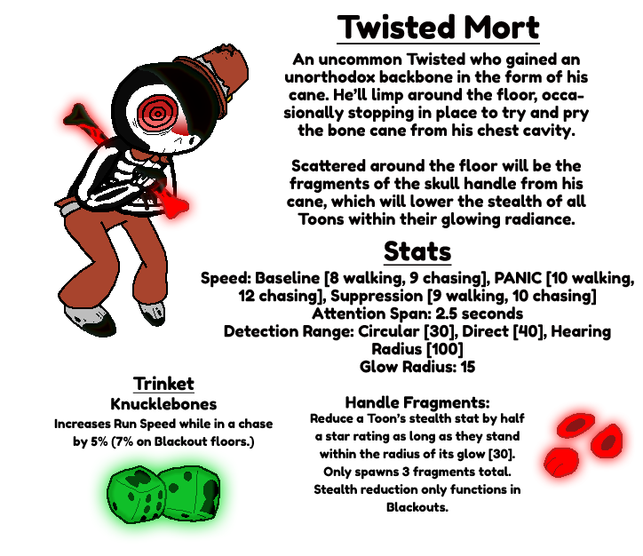 To follow up from the updated Mort reference, I decided to redo his Twisted form, since the only picture I had of it wasn't even accurate at the time it was made. Included is his trinket for getting 100% research, since that was also in a seperate pile from everything else.