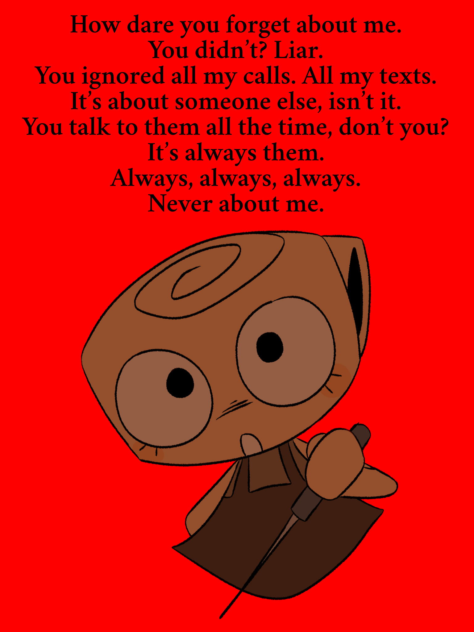 I was thinking, what if, hypothetically, a human enters Gardenview and manages to join the toons?What would happen if this human started listening to the toons, especially the Mains, their problems and imperfections, and helped and comforted them?I mean, even living a lie to complete Ichor machines, they never dealt with their own personal problems. What if this human ends up being just the person they needed to feel better and even help see how their Twisteds are actually a representation of their own issues?https://www.youtube.com/watch?v=jKIJd_f6fMY&t=97s
