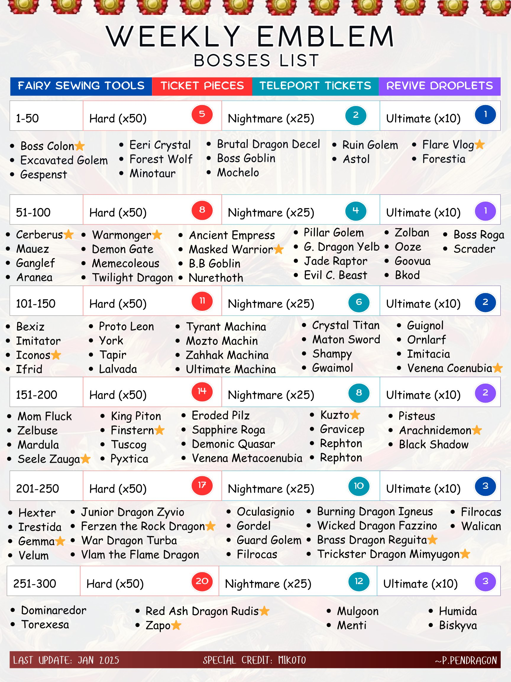 Anyone got the list of bosses levels and location for leveling?