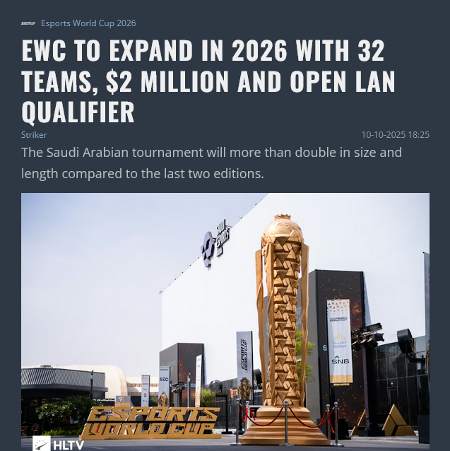 It's this year's addition, just simple Saudi complex of "more money = good" and CS2 being one of the more popular events