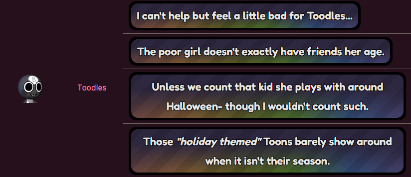 >>2254670Maybe a Teen Toon because of the Dyle conversation line involving Toodles.