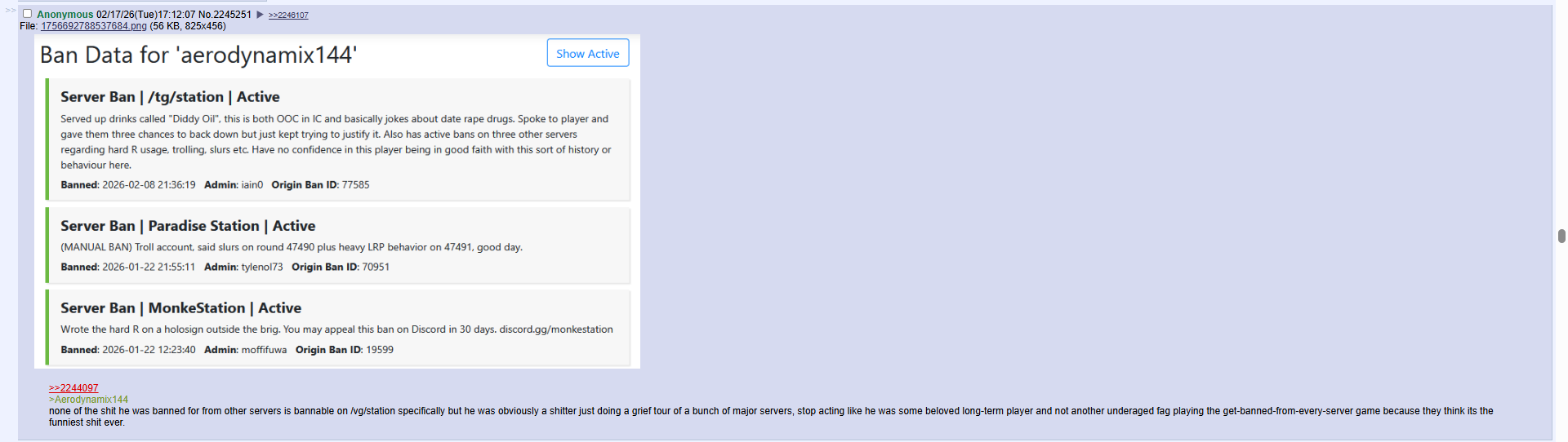 2slimeCID: 1282834673Just cant stop being a piece of shit and freshly did a retard right off his 3 month. Stay gone! luzzgawr PERMANENT