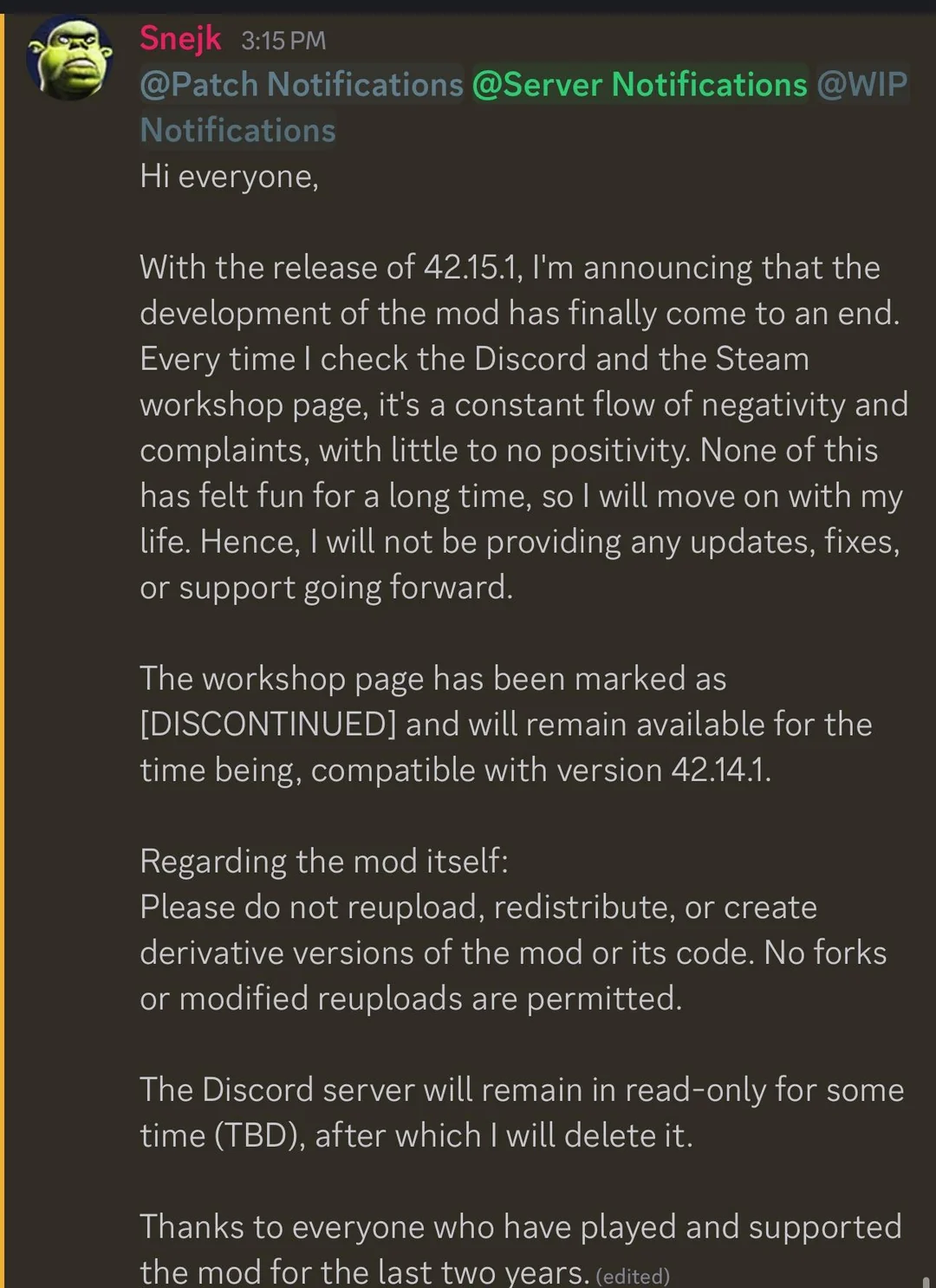 >Literally not a single person ever has fucking messaged me about 'mod theft' or anything