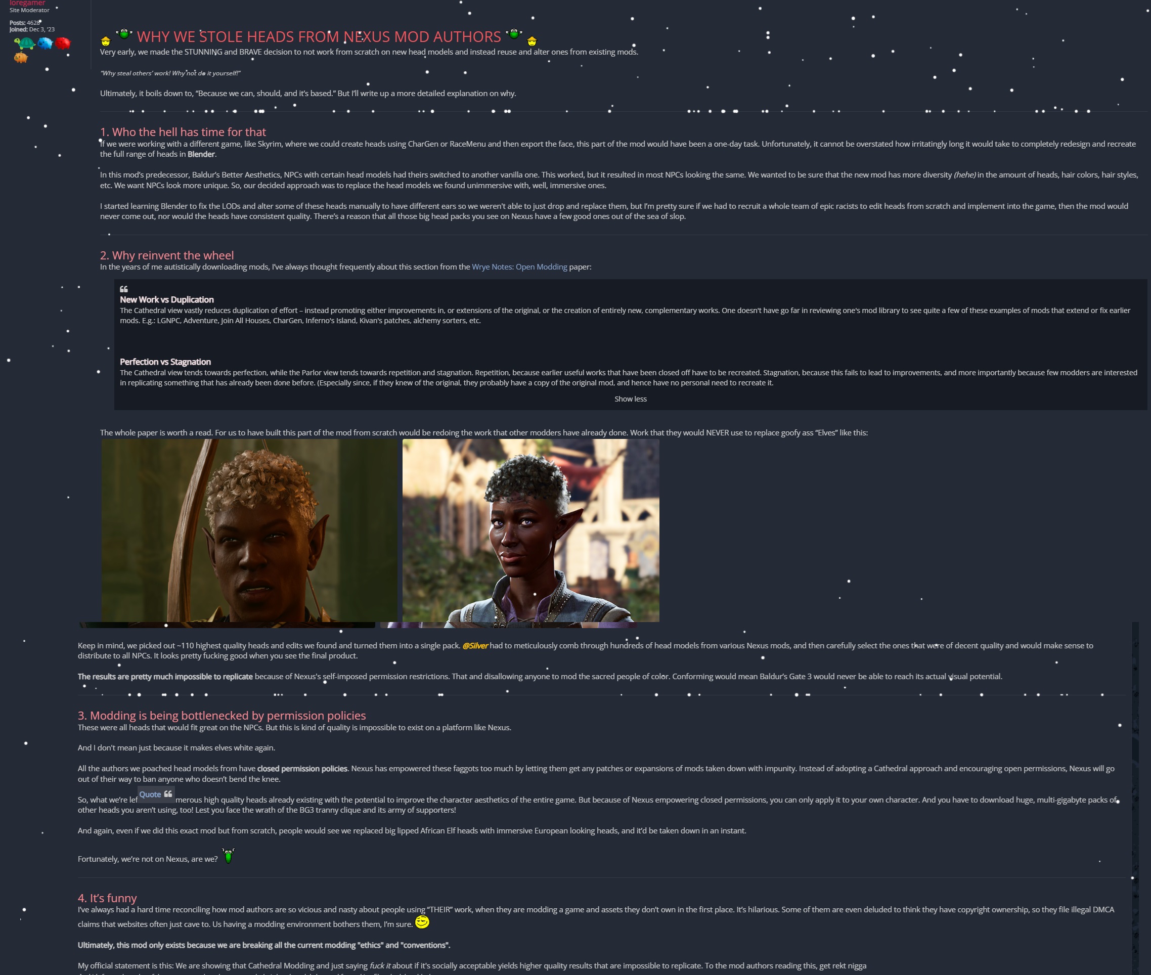 Reminder that an Anon had his mod and modding privileges banned because of another faggot modmaker.