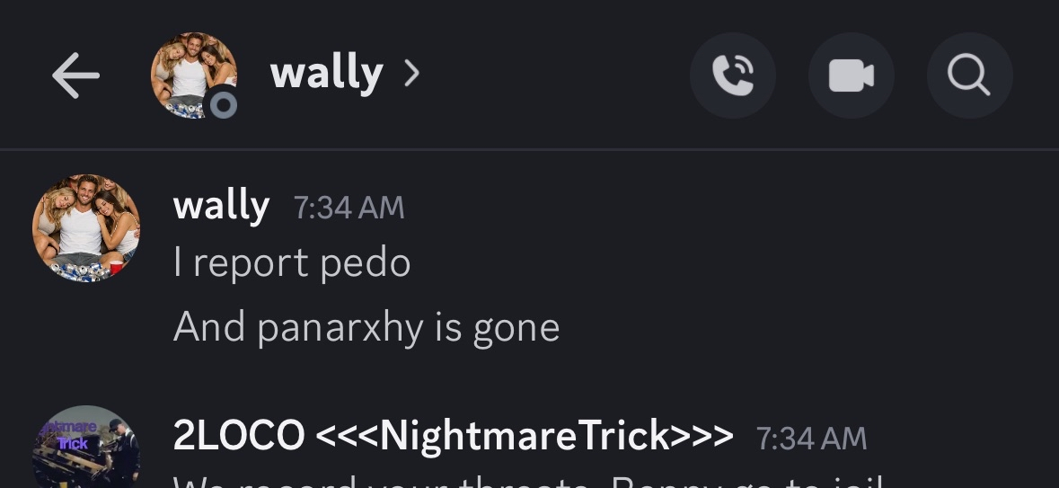 Here’s me making threats to falsely report p-anarchy for pedophilia.And then I did it! LOL