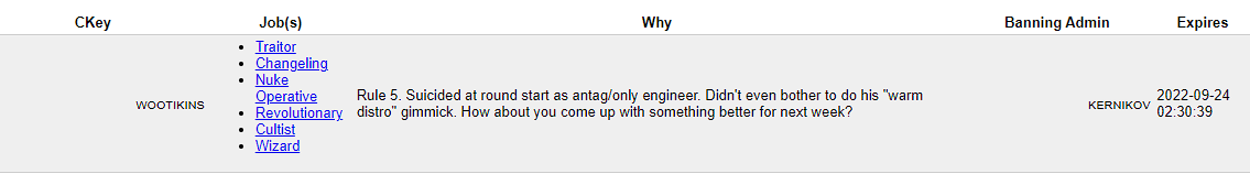>>2295174He killed someone without verifying they are antag for sure with no solid evidence just off vibes which is not a ok way to play even if he was right and it was antag that doesnt make it ok to just kill random people with no proofAlso he wasnt even security it was not his job to find and kill antagonists
