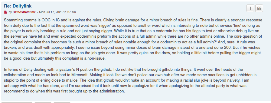 That cracker clown put his knee on 2slime neck so that nigga did what his black panther instincts told him to and he was rewarded for it. The admins tried to take that win away from him. But when admins roll antag and start using mod verbs to cheat it’s shuved under the carpet. If you want to see what VG Cuck admins sweep under the rug ask me
