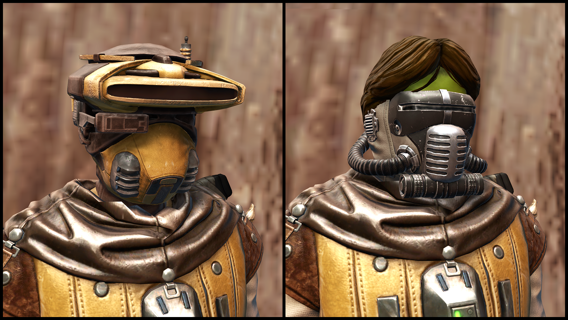 Wish we would just time travel to the point where we get a 2nd shot at GS7 rewards.All I want is to remake the BH I tried to be back then in SW Galaxies. Mind you I only tried, I had no idea what the fuck I was doing and I only remember paying all my credits for a helmet like the one on the left. The right is cool too though. I just wanna bounty hunt but not be a Mando Orc.