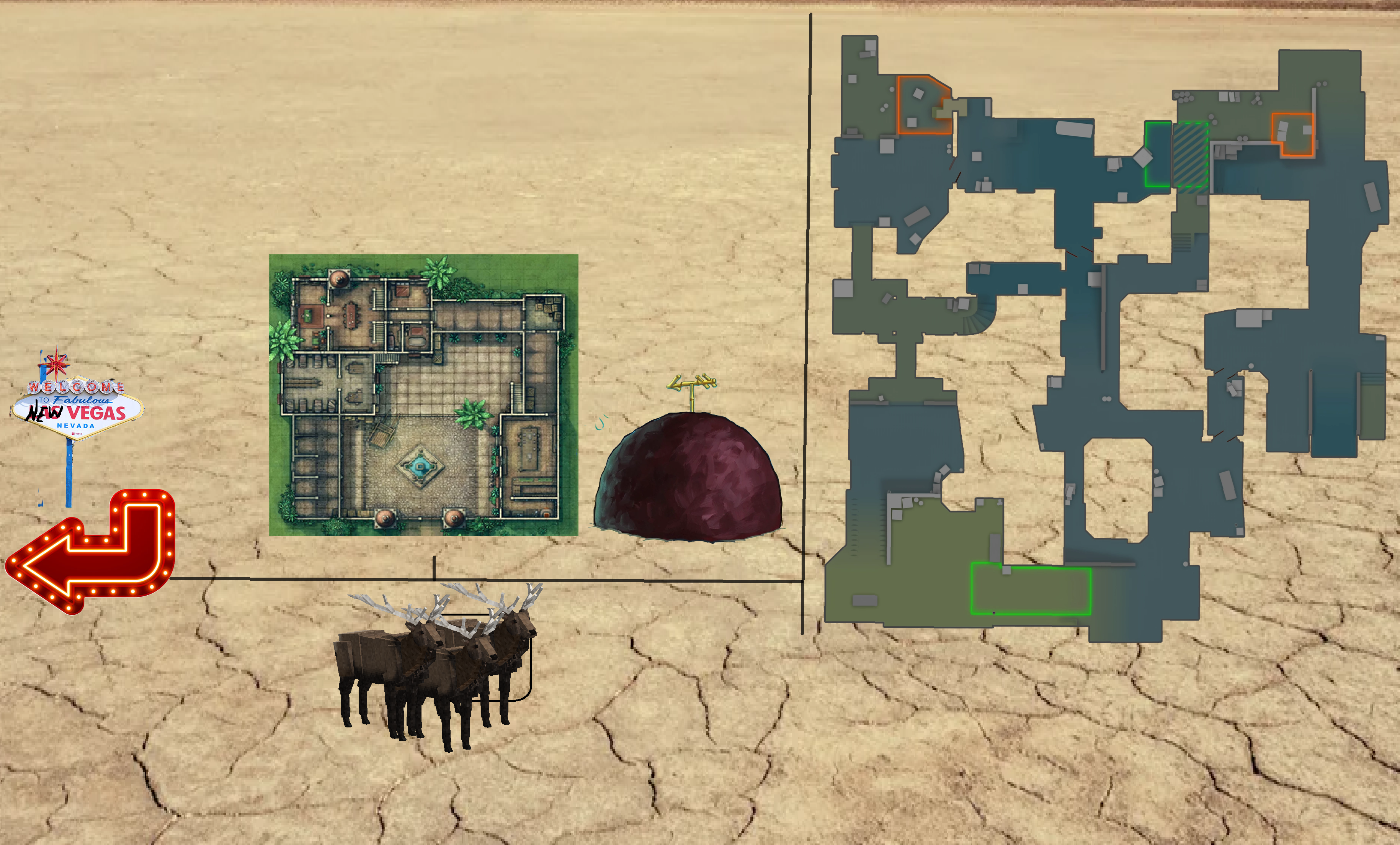 >>2319143Last, a map of souf region for those anons who dislike the cold and jannies of norf. Currently making a fallout new vegas themed town.