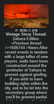 Vintage Story Thread, Naptime Edition:>Game NewsNext update is going to be the long awaited berry bush rework! The hype is high for bushes that no longer produce fruit in the wild/early game.>Server NewspOG has had major road development, both norf and souf. A lot of anons have migrated souf. The survey mod was added to pOG (thank you onions) and barm made some great new maps for sbr.Weekend serb had a 2fort event (might still be planned) so worth checking out. Talks of a pOG olympic event are in the works, expect an event like the Sahara games this summer.>/vm/ Vintage Story (pOG or nomap 2.0)165.217.128.185:9140A newer server with the culture and people of OG. Lightly modded. Focused on longevity and chan culture. Essentially OG's replacement. The server has nomap and nocoords. Its focused on civlarp and sticking together, and group projects. So far its been successful with multiple towns and roads. Almost all players live within 6000 blocks of spawn, something we haven't seen this late before with the exception of those moving souf on the new network.>Modded Weekend Serb:>174.73.170.143:42420Join for heavily modded weekend fun and shenanigans. Only open on the weekend, the new server is skybase fantasy themed. Great for fucking around on the weekend with random anons.Reminder that Discord/ Reddit trannies (and others whom emulate them within these threads) are not, and have never been welcome. No servers will be added to the thread if they are associated with either. D*scord faggots get the rope.Thread Theme:https://m.youtube.com/watch?v=8-r-V0uK4u0Last thread (hit image limit)>>2284231