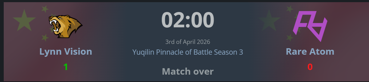 >>2330969>i think it still has something to do with getting another chinese team through to the major this time thoughWhich is what I'm saying, with SemperFi bombing out of this tournamenthttps://www.hltv.org/events/9079/xse-gangkui-cup-season-2-finalsLVG's spot was guaranteed. They gain nothing from fixing this finalhttps://www.hltv.org/matches/2392862/lynn-vision-vs-tyloo-yuqilin-pinnacle-of-battle-season-3