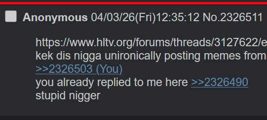 >>2323734>complaining about anime on 4chanyou know what the hltv fag is actually right, kill yourself autistic sperg that cares too much about a shitty OP