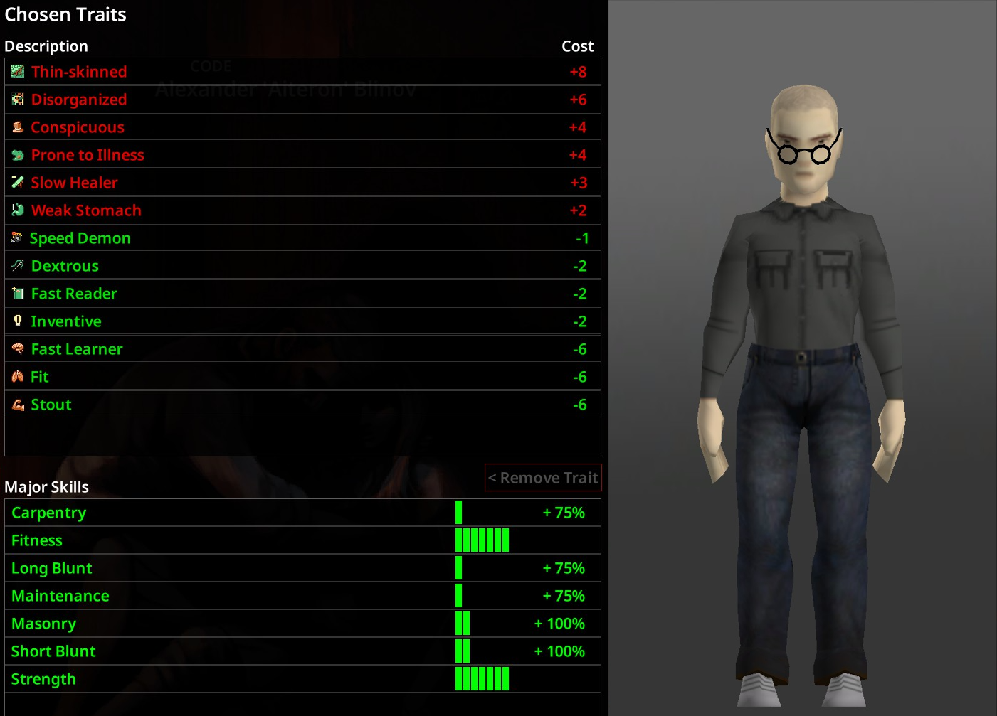 >read about the bare-ass meta here>try it out>incredibly bored by the lack of dripWhen it comes to occopations and traits, I always pick meta. But no clothes - no thanks. I enjoy finding pimp gear and adding leatherpatches to everything.I'm also not the best player, so I will eventually get grabbed and fucked.