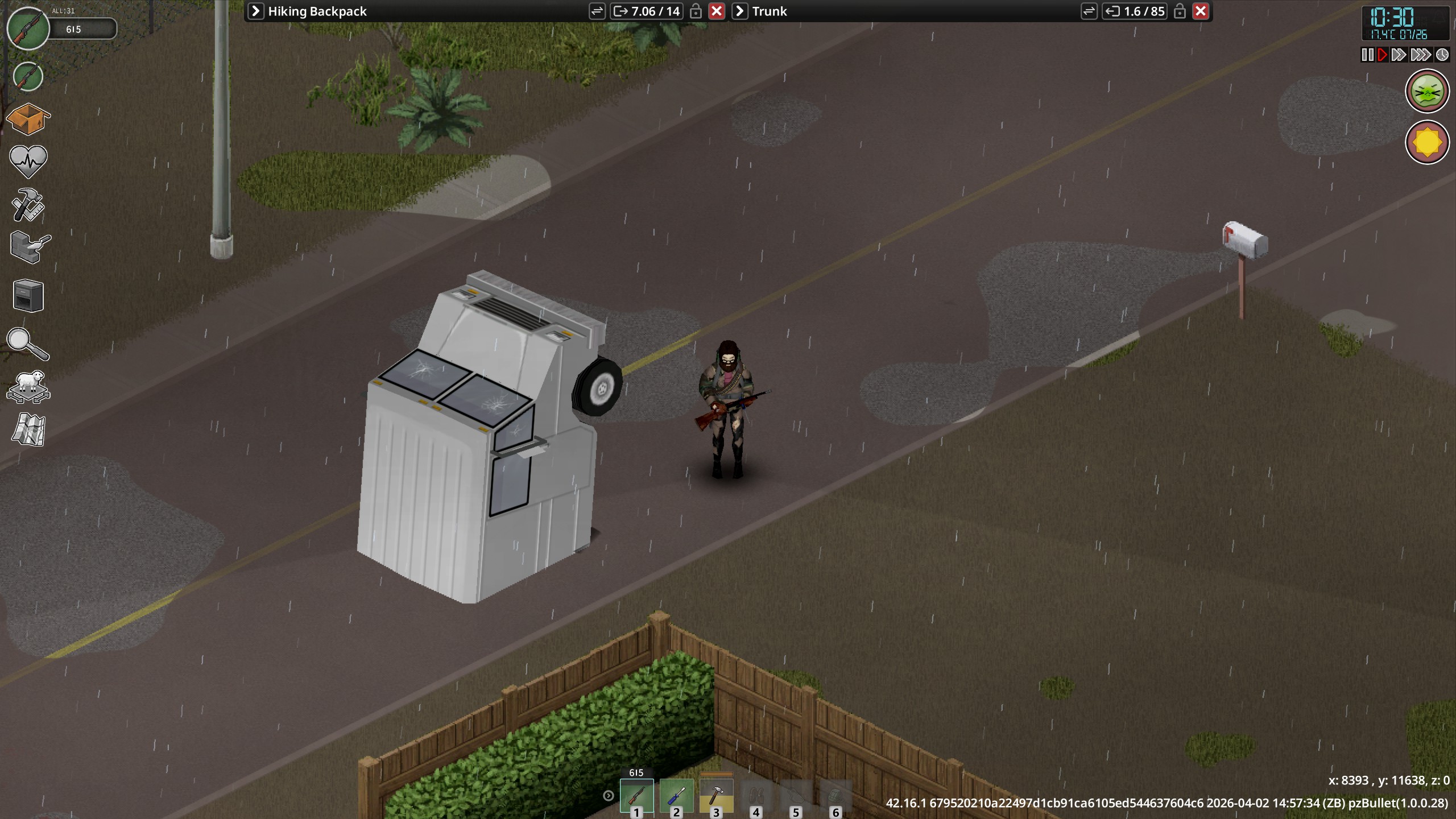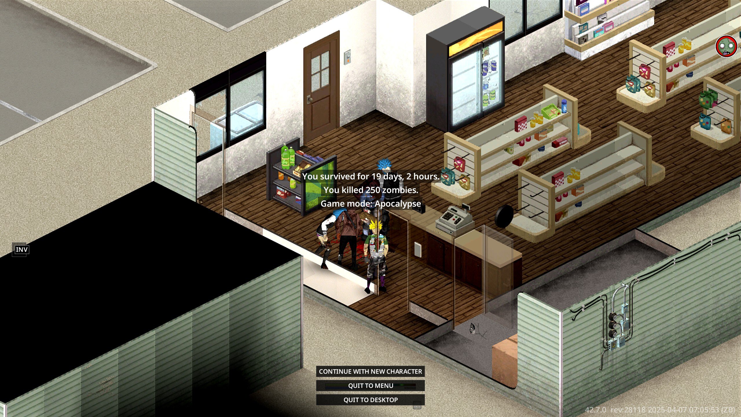 >zombie follows me over fense>on ground highlighted>attack it>miss somehow even though it was highlighted>it lunges>character stumbles>while stumbling they turn a full 180 degrees and walk directly backward toward the fence>two more zombies are at the fence somehow (they were not seen previously, with no place they could reasonably have come from)>get omaewa'dthanks zomboidvery cool