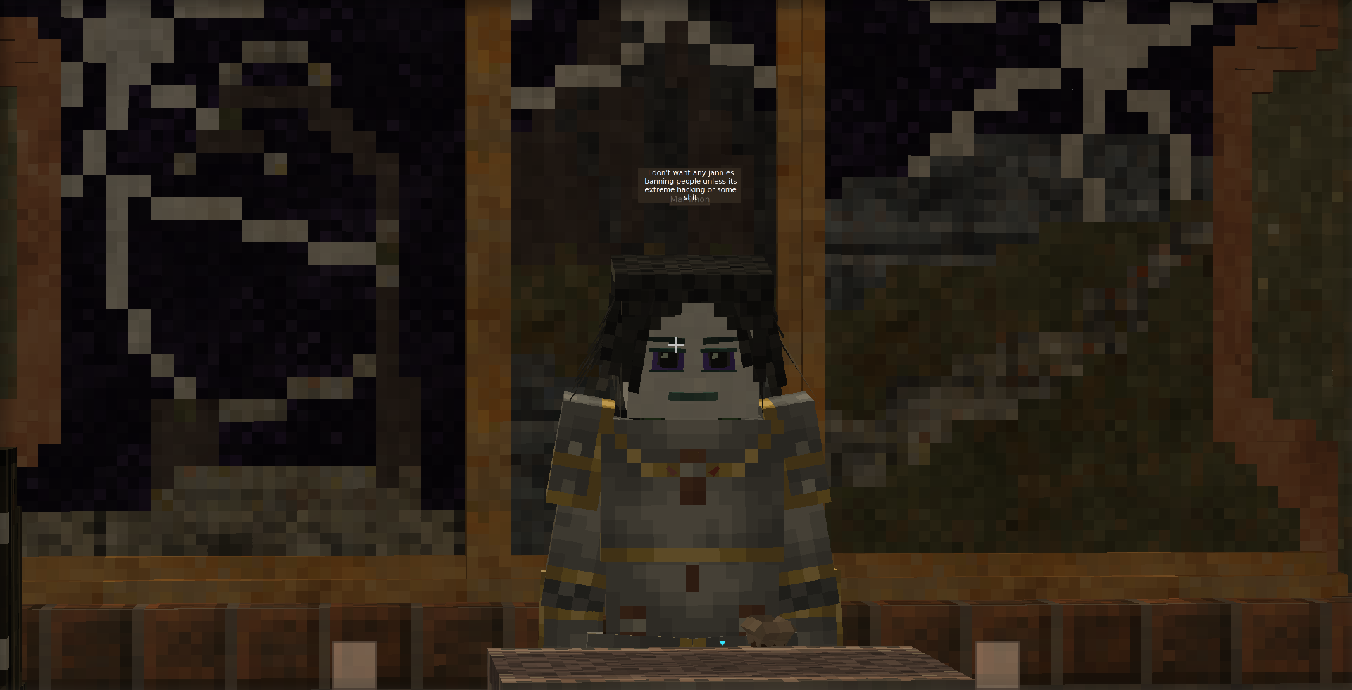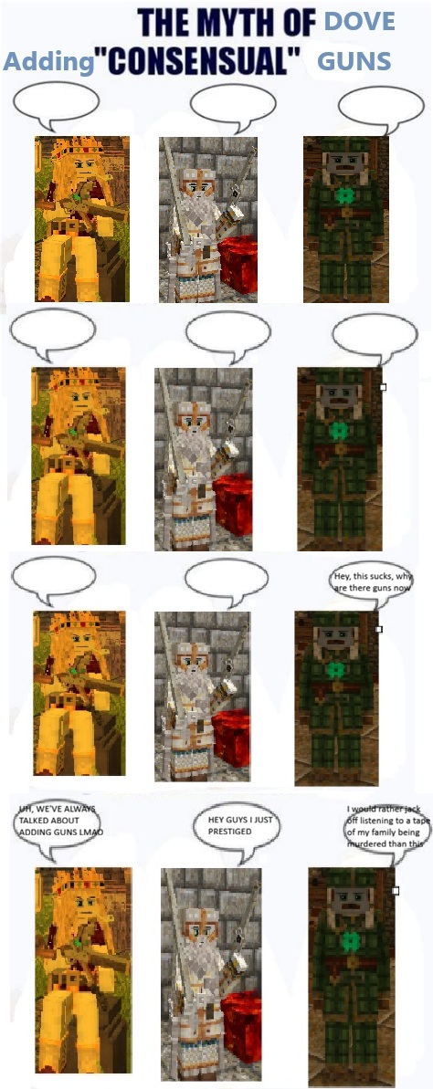 >>2339098If dove removes guns I won't be happy until he takes away all of the weeb weapons, instruments, biggerstacks, and xskills. There's simply no reason to have any of these potential bug causing mods. Also he needs to increase draw distance to 1080, and move spawn to Pike so that more players will want to live in it and juniper (dracula mountain is abandoned). Finally he needs to turn map on.