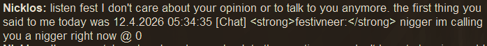 >>2353554>bile doesn't factor in thisI mean he does, considering that's who was griefed, but alright>I'm ready to talk about reconciliation, for being a wigger and celebrating what you did like it's some big epic sagaAgain, not Nick, and again, practically nobody actually cares enough to want to punish Nick. Nobody is asking for your forgiveness, and nobody ever will, but if you want to go a be a whiteknighting terrorist to avenge bile be my guest. My point is that you are acting on pretty much nobody's behalf.