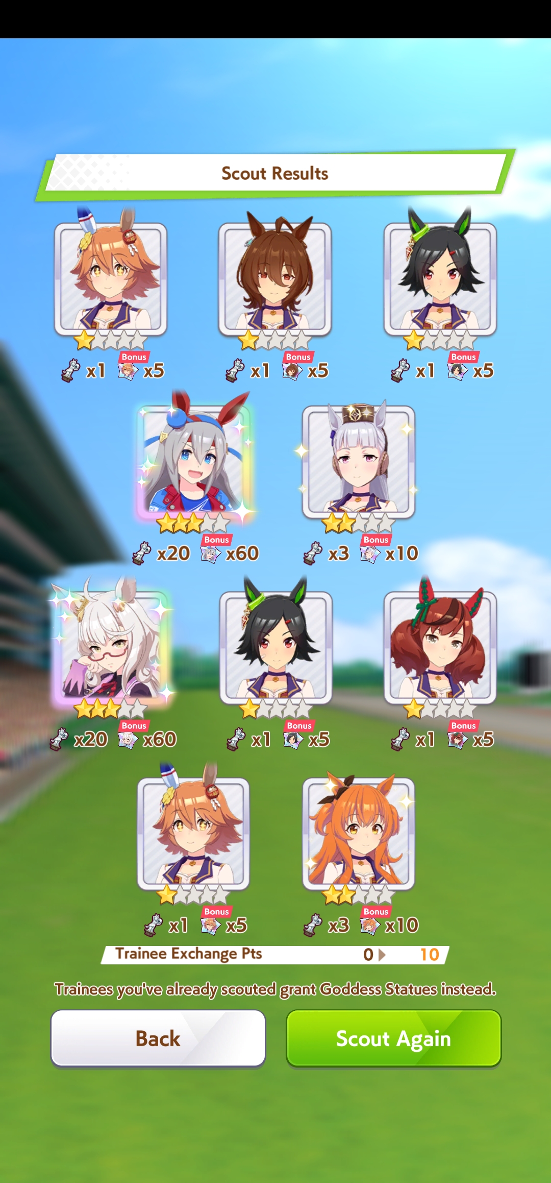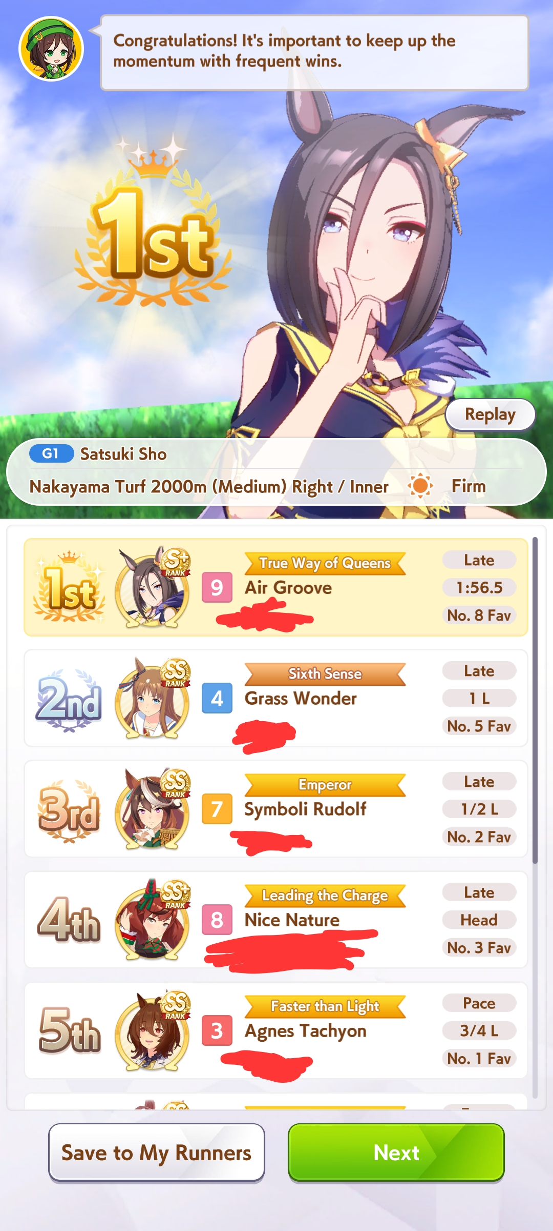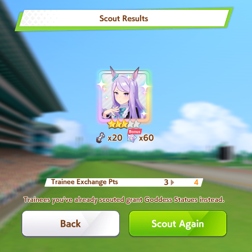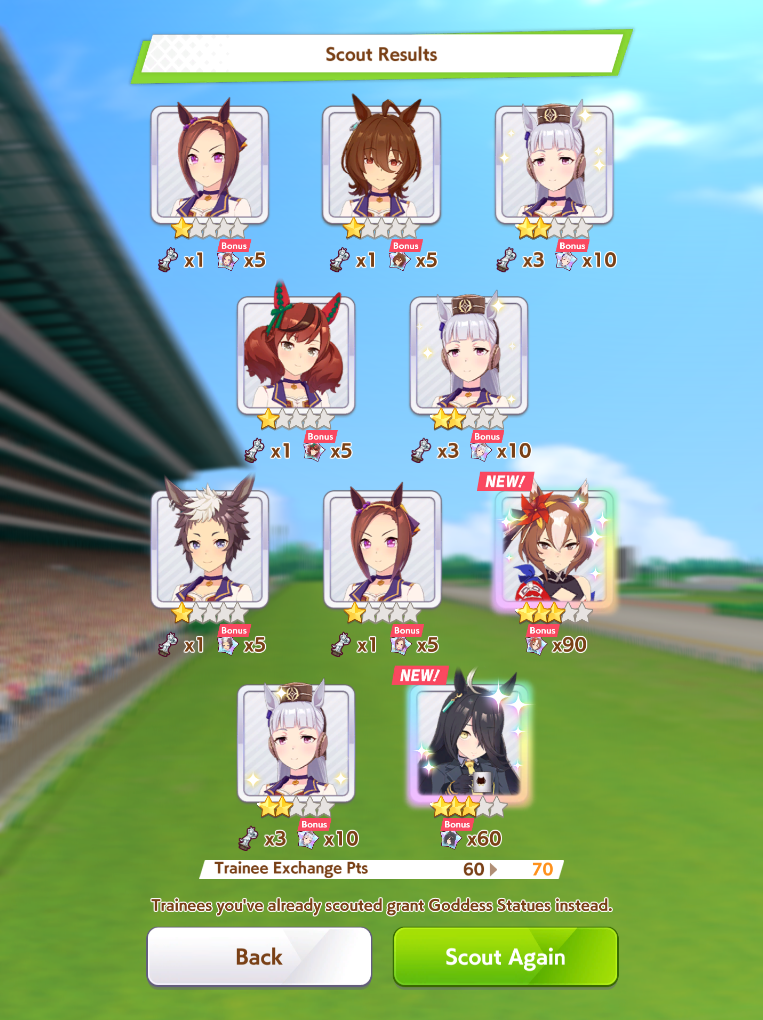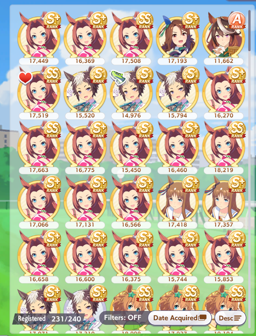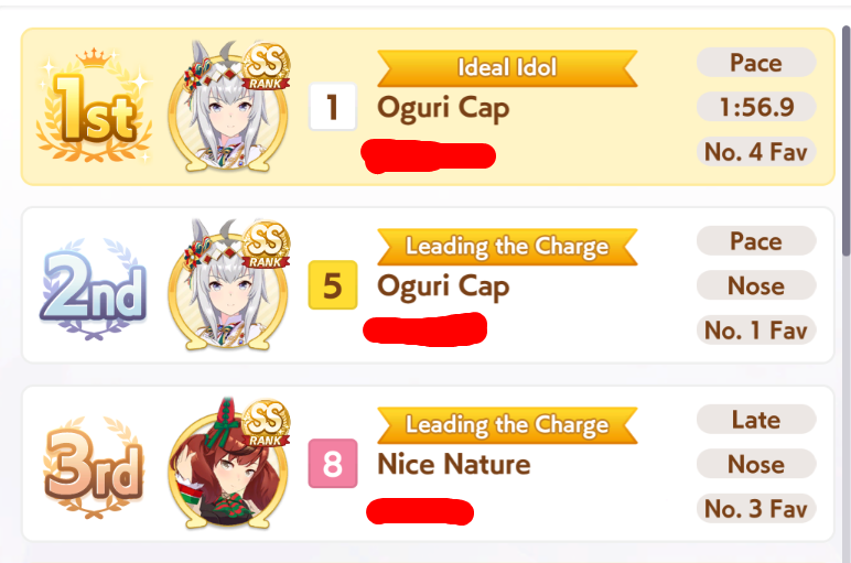 I'll be starting the Mejiro Monday race soon.>not a single BrightI knew I should have brought her...Also, I'm not on my PC right now so if someone wants to screenshot the results, feel free to do so.