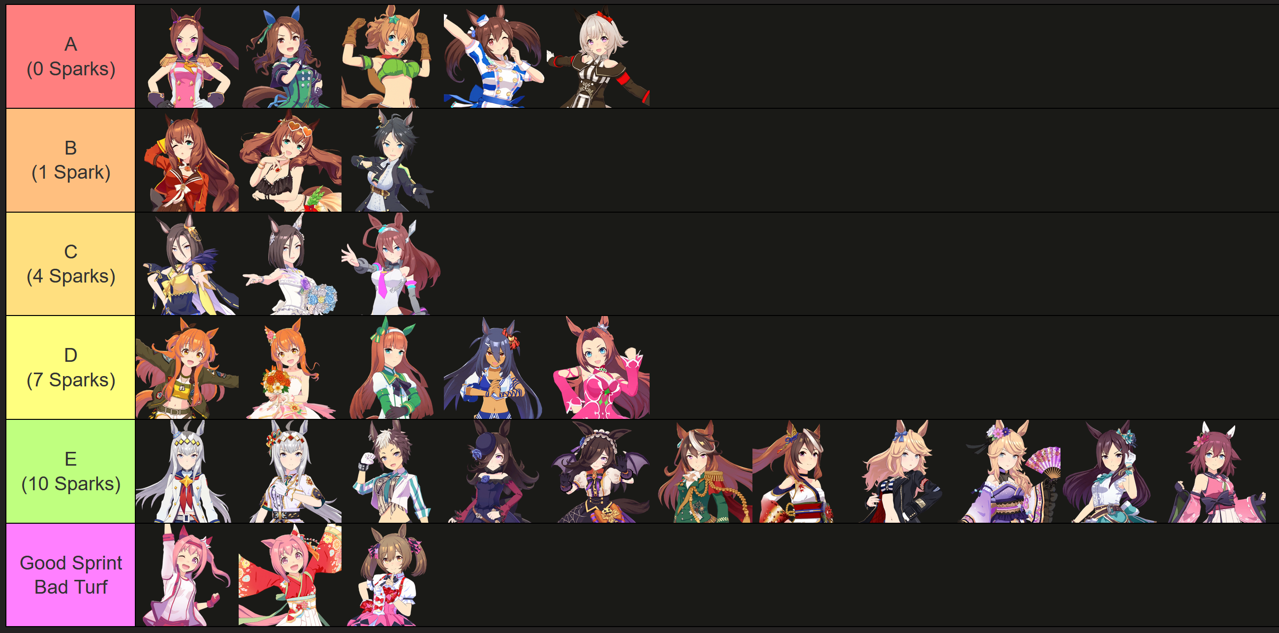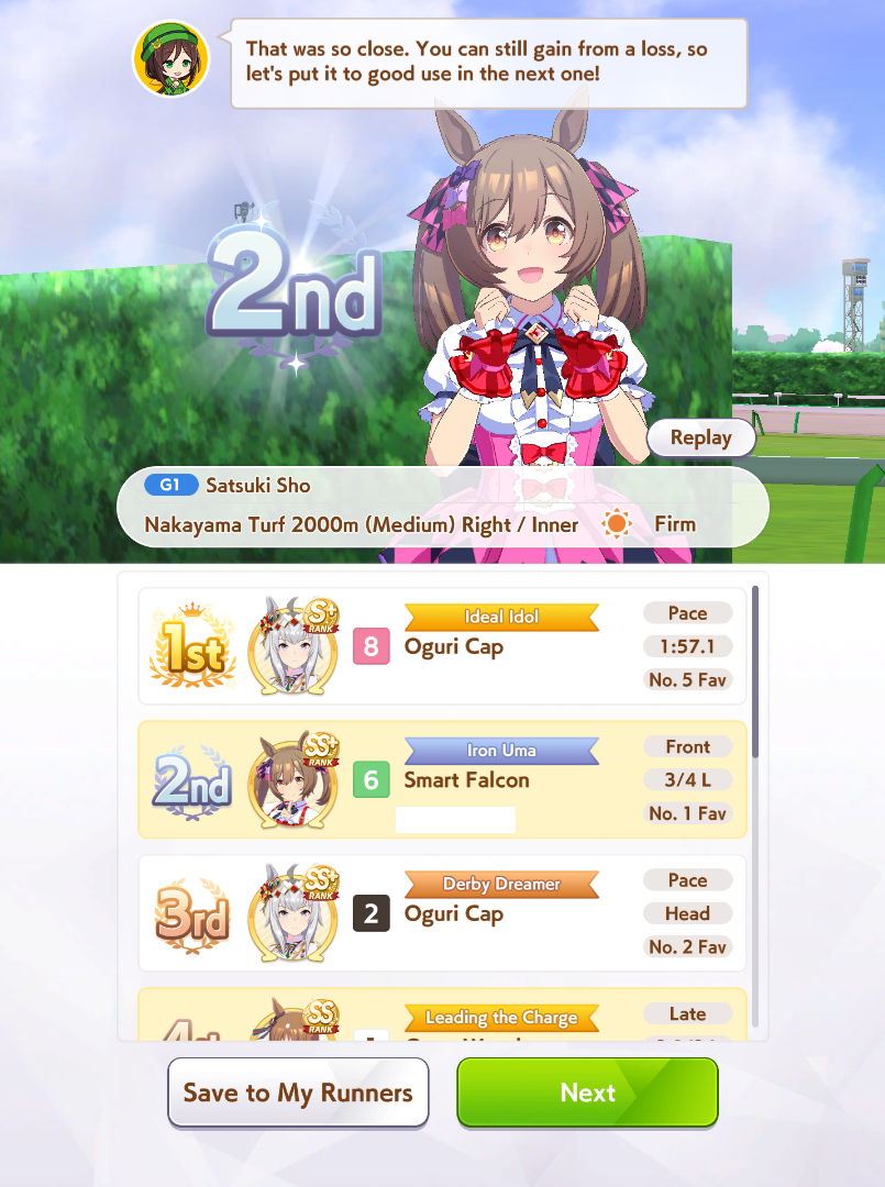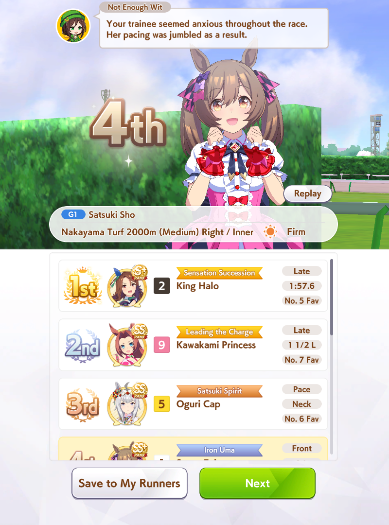 >>2374834I don't know if you consider it underrated but Cafe's career is very nice.But I don't know if you have her because you didn't post an image showing the options.>>2374843Left rather than Right, 777 is a bit late so the Xogre won't be as dominant, anyone who can be in top 5 by late race wants Red Shift, MPB is less reliable due to tiny activation window, there's probably other things as well.