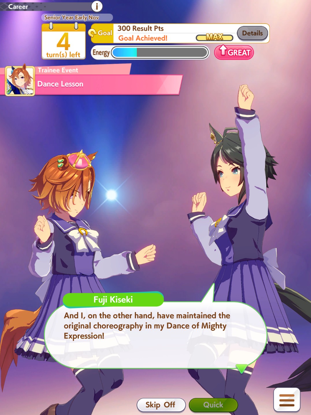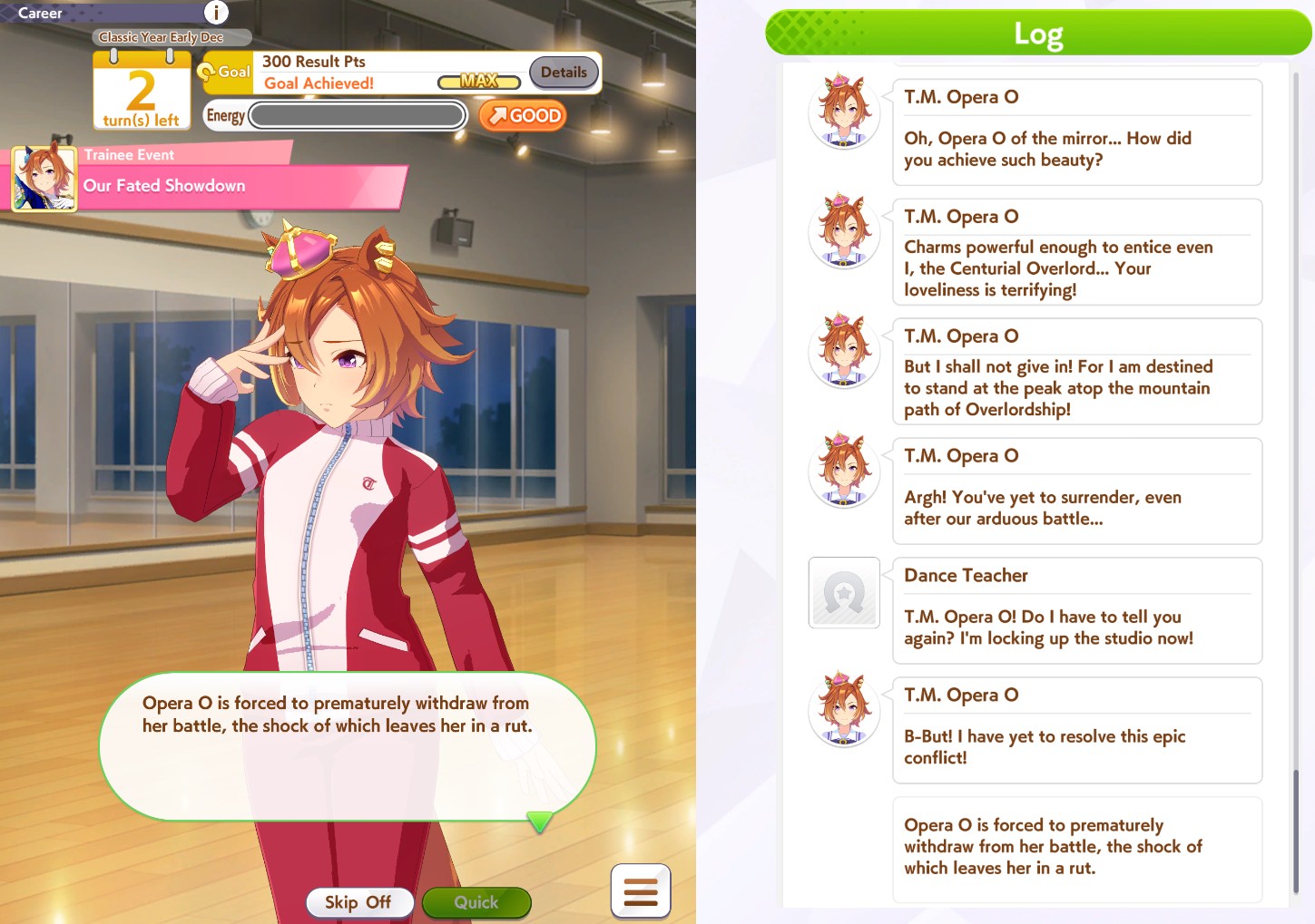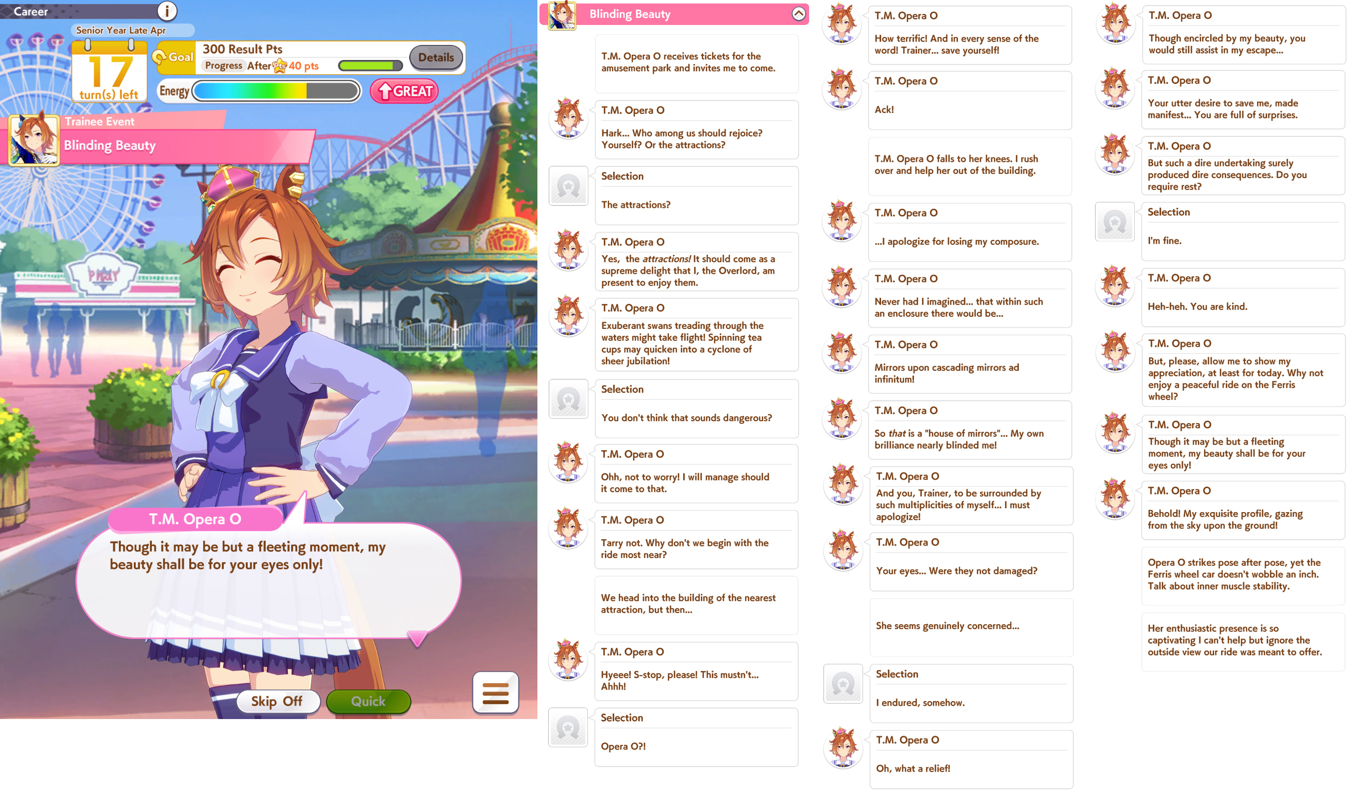 >>2374834I don't know if you consider it underrated but Cafe's career is very nice.But I don't know if you have her because you didn't post an image showing the options.>>2374843Left rather than Right, 777 is a bit late so the Xogre won't be as dominant, anyone who can be in top 5 by late race wants Red Shift, MPB is less reliable due to tiny activation window, there's probably other things as well.