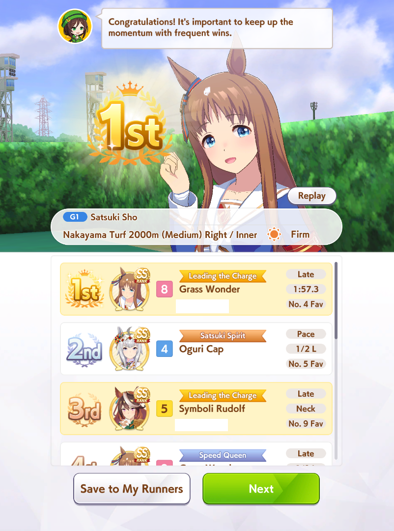 Aries Cup starting at 10pm, April 23Race Conditions: Nakayama, Turf, 2000m Medium, Right-Handed, Spring, Sunny, FirmWe also have Triple Crown races coming on the 25th and 26th.>URA ShoURA scenario, Spring, Good, Mile, Right, use one human card. Tazuna is not on this list for reason.>Shopsuki Shohttps://files.catbox.moe/5yaeva.png Everything's in the image for your needs. I didn't forsee the Shakur free card and I don't know if I care enough to edit the picture. He didn't>Tenno SHOHNONONOBasically longslop hell of the last CM but you can only run umas in a style they have an E or below aptitude in. As an example, Grass can be run as a Front or End, Tamamo can only be a front, and so on. My apologies to Mayanofags, you know why.This userscript adds functionality to upload to Catbox directly from 4chan, for text-only posts, this also attaches the first Catbox link found, if any, to the post as a normal image.https://gist.github.com/catboxanon/ca46eb79ce55e3216aecab49d5c7a3fbCM registrations are now open, make sure you don't click on Open League by "accident"!