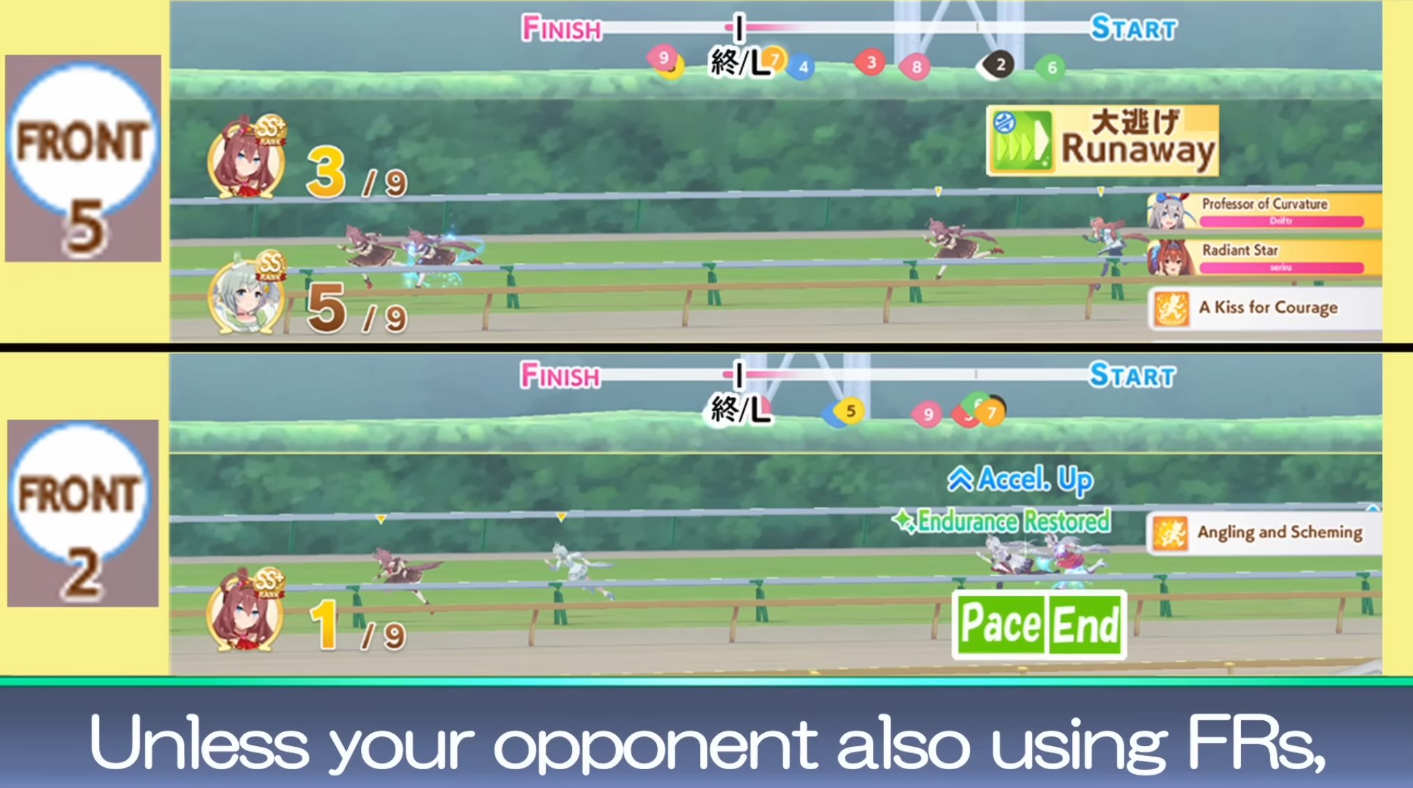 It is a genuinely harrowing realization that the ONLY reason why triple fronts aren't the best comp is because the track is basically tailored for COguri, and the next CM where she doesn't have an "I win" button will be completely overrun with fronts.