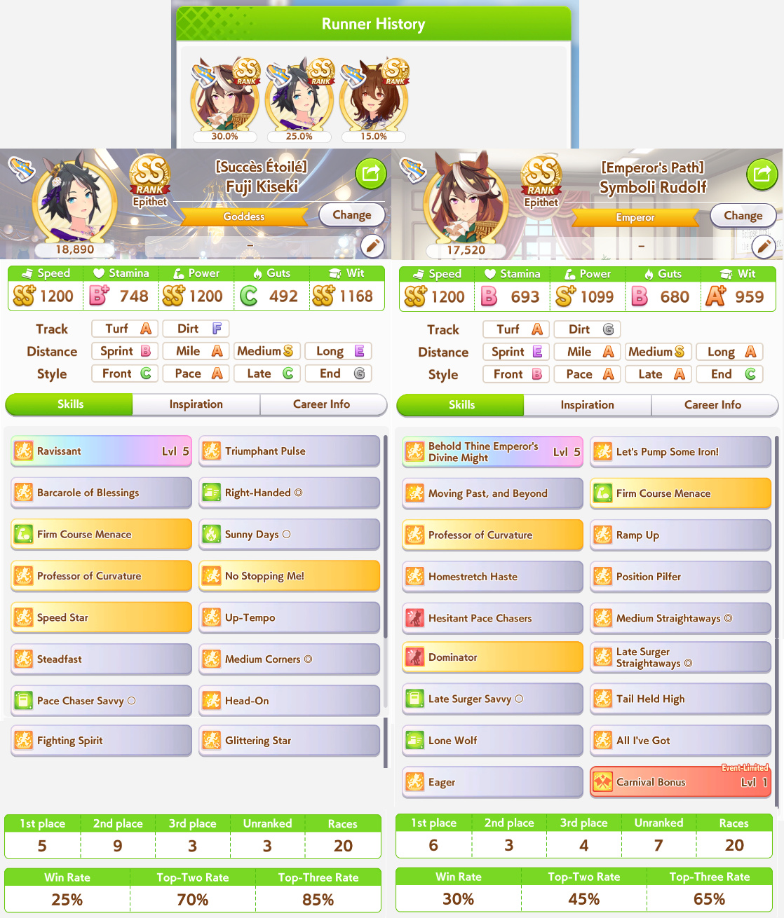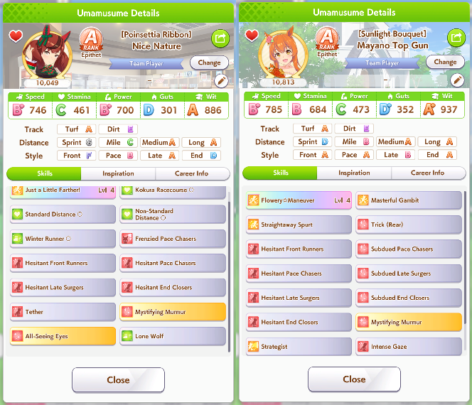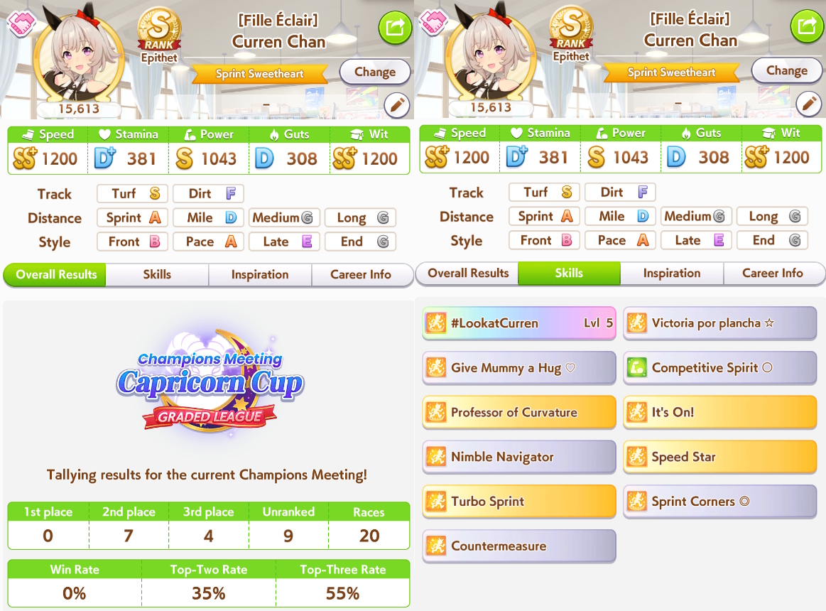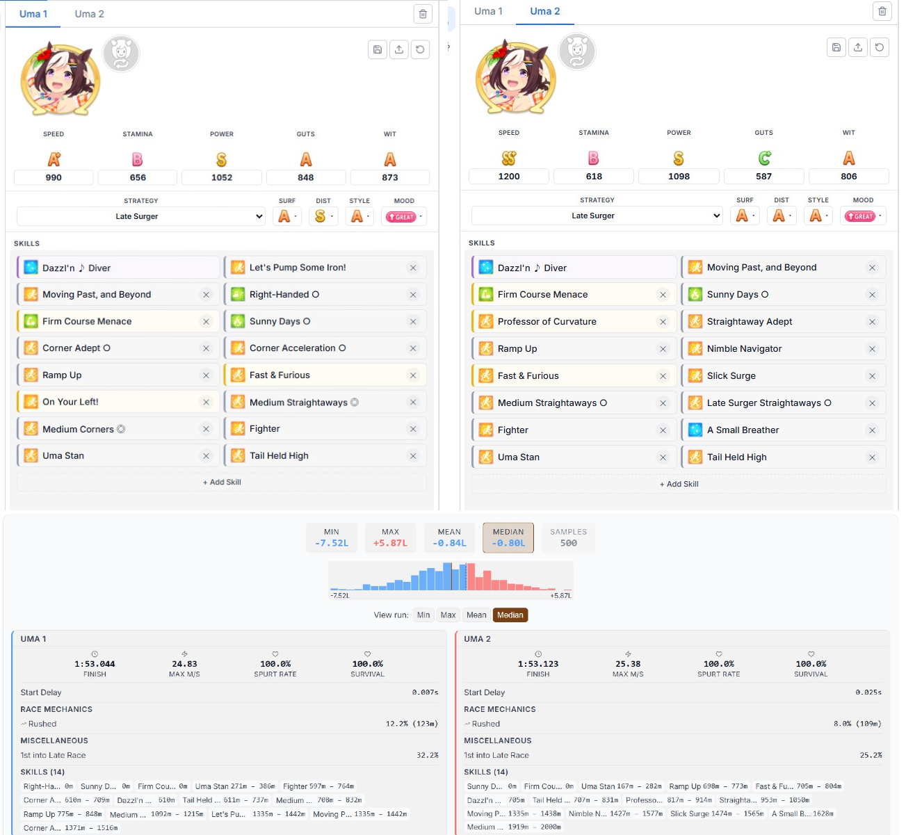 >Testing on the calculator who to bring together with Oguri and hybrid Rudolph>The Spe on the left is better than the one on the rightWait, what? Are Medium S and the skills really better than having capped speed?