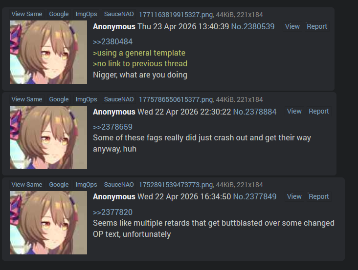 >>2380484>using a general template>no link to previous threadNigger, what are you doing