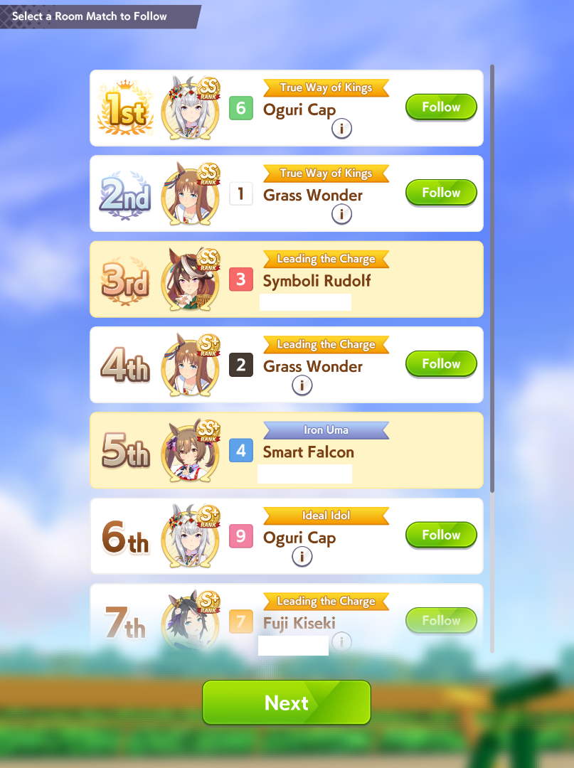>x. Oguri, Dominator Grass and TachyonI knew it would be prevalent but fuck dude it's actually demoralizing to get 2,3,4th place against the exact same comp 5 times in a row. If every CM is just gonna be some flavor of this from now on then I'll just stop even trying