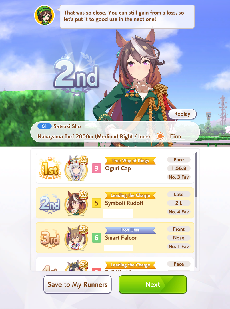 >>2382633Stop running single fronts, you are just making XOguri stronger since it's a free NSM proc. If you're not running double/triple front to try and edge her out and win before she can catch up, you want to run backliners and hope she wins lucky Pace to give no target for NSM while you get to do it off the other Paces on your Late gamblers