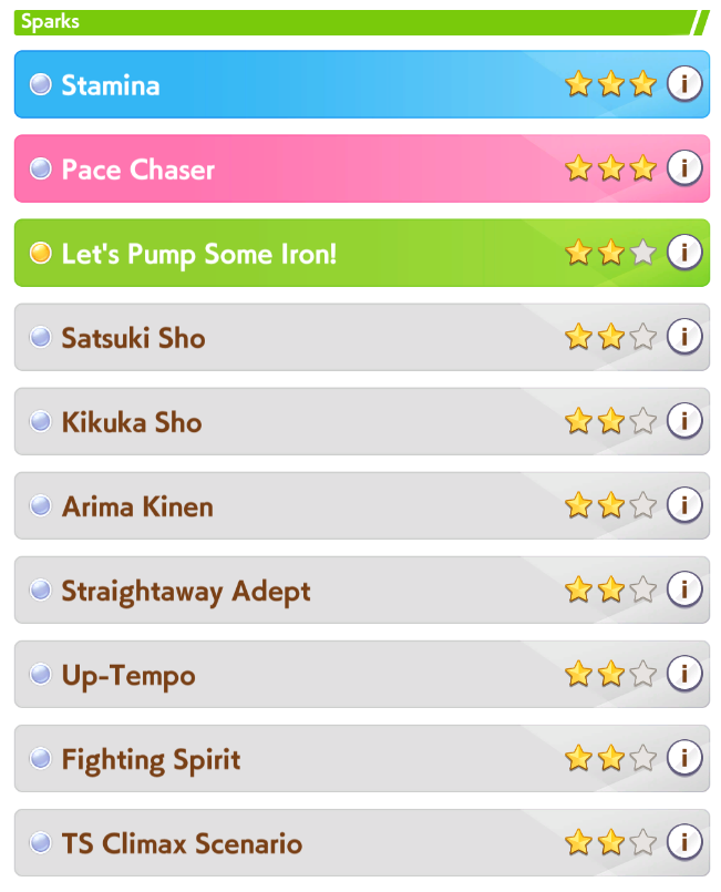 >>2380527C is fine. D you start to have some issues with inheritance. For example, training a milelet for long is very painful.If training Mile though, E is fine since you can just pump your uma with 10 mile sparks.