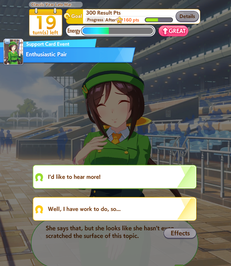>>2393163Umas with stamina ults are the most braindead easy to build without paying attention. Just keep training speed over and over and you literally can't lose, not even the tenno sho. Tachyon, creek etc.