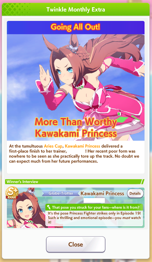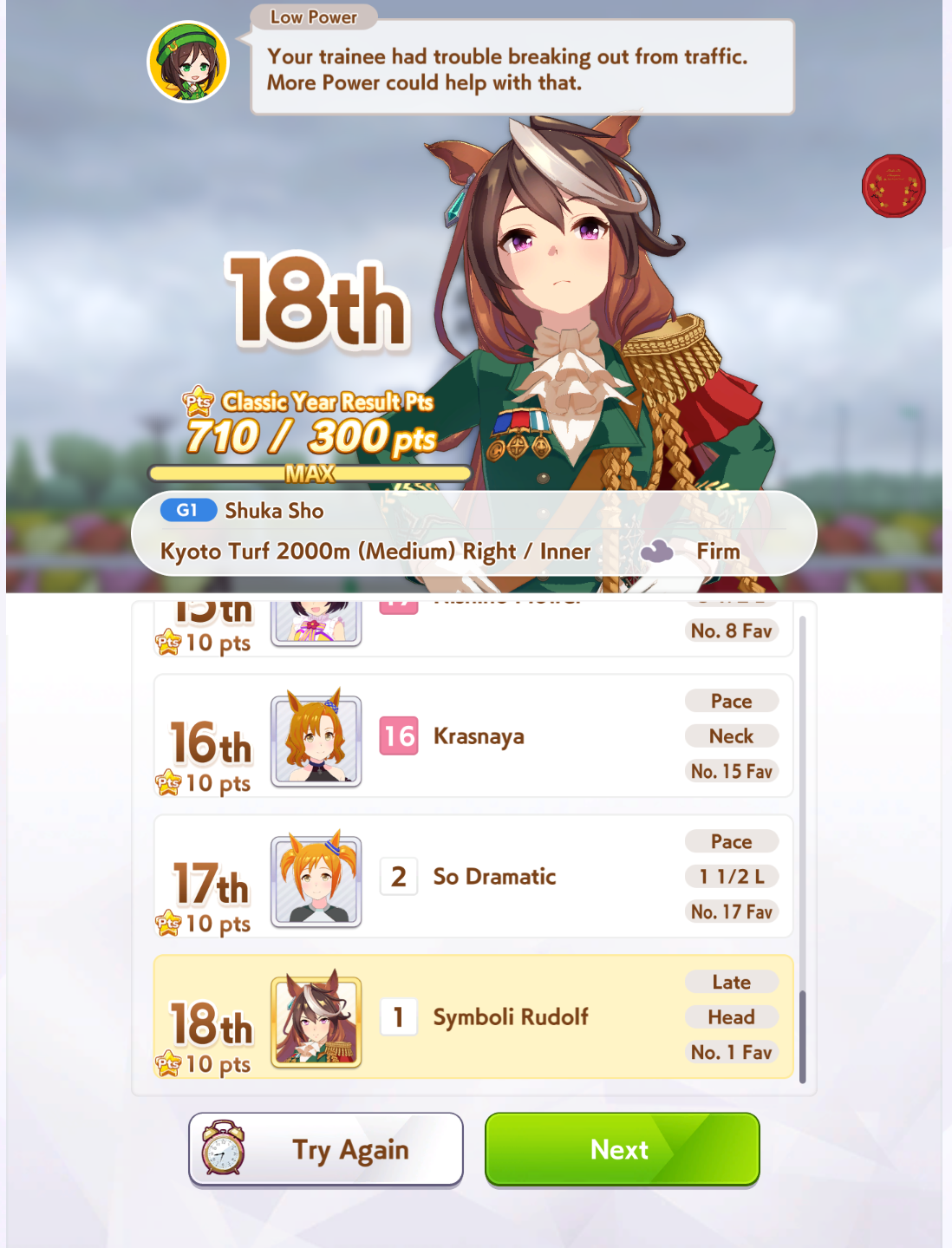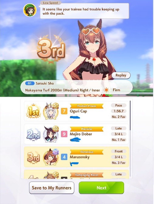 >>2393178In the Libra rerun? Dies to Taiki and Nishino Flower since the front can't create enough distance from the pacers by itself.