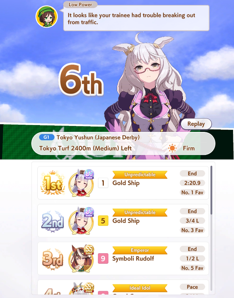 >>2393110She is definitely gassing out, a Late start or Rush kills her. Also, have you seen how many debuffers there are? a single Sharp Gaze kills you, your spurt will come out late at the very least, no wonder you're losing.