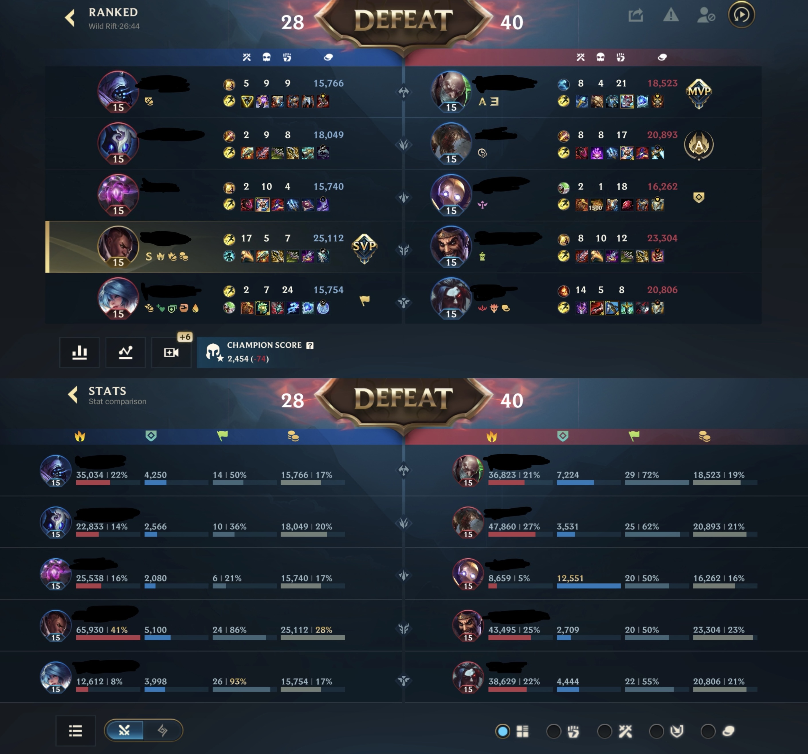 >>1913748It's me again. I genuinely dk how to fix this. These types of games (picrel) keep happening and idk how I can improve and win them. Feels very unfun to always carry 4 other dead weights who dont know how to play.Note that I dont normally queue ADC, I just flexed into this role because the game forced me into it. I know as an ADC it's hard to 1v9, but even as a jungler I still struggle like this. Picrel is just the best example so far. >>1913979>>1914011Is there really no solution other than "play something else"? Why and how did Riot fuck ranked matchmaking up so bad?I tried MLBB yesterday and managed to climb to Mythical Immortal in 2 days, which was nice. Because in MLBB at least I feel like I can get some competent players past a certain rank. WR feels like everyone on my team is just playing TDM, and not only that but sucking at it and feeding.
