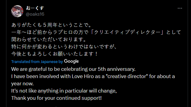 >>1856183There’s no hard evidence I can provide without delving into company matters that probably shouldn’t be shared, but I’ll try to elaborate on the situation as much as I can. Mr. Akanaru most likely resigned from bis position for three reasons:•He took on too many roles at the same time and was severely overworking himself•His work was taking a toll on his body and it caused him to have some physical health issues or worsened their symptoms•His twitter feed implies he struggled to keep up with certain deadlines, and his job prevented him from doing things that he actually wanted to do, such as character illustrationBefore people start doomposting, I should point out that him resigning from his positions at Lifewonders is actually the ideal scenario for everyone. It’s clear that the reason why he was unable to provide variants for his characters was because LaH was literally scopecrept beyond what he was capable of dealing with, which left him no time to do any illustration work (which means no time to work on his character’s variants). Now that he’s currently a freelancing artist, he has more time and energy to focus on character illustration, should any company commission him, including Lifewonders. As for how I know he left the company on good terms, I just happen to know that he’s been working on some variants for his characters in Housamo (might be seen during the game’s anniversary, but don’t hold me to this), and this was happening some time after he left.