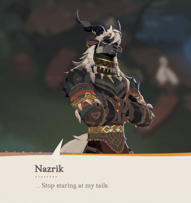 Kordan tried to kill us after witnessing us help their tribe out time and time again just because he found out we weren't their godNazrik tried to kill us before witnessing us help his tribe out time and time again and then joined us in killing godsDo not stick your dick in crazy, stick your dick in Nazrik, Nazrik also has two tails