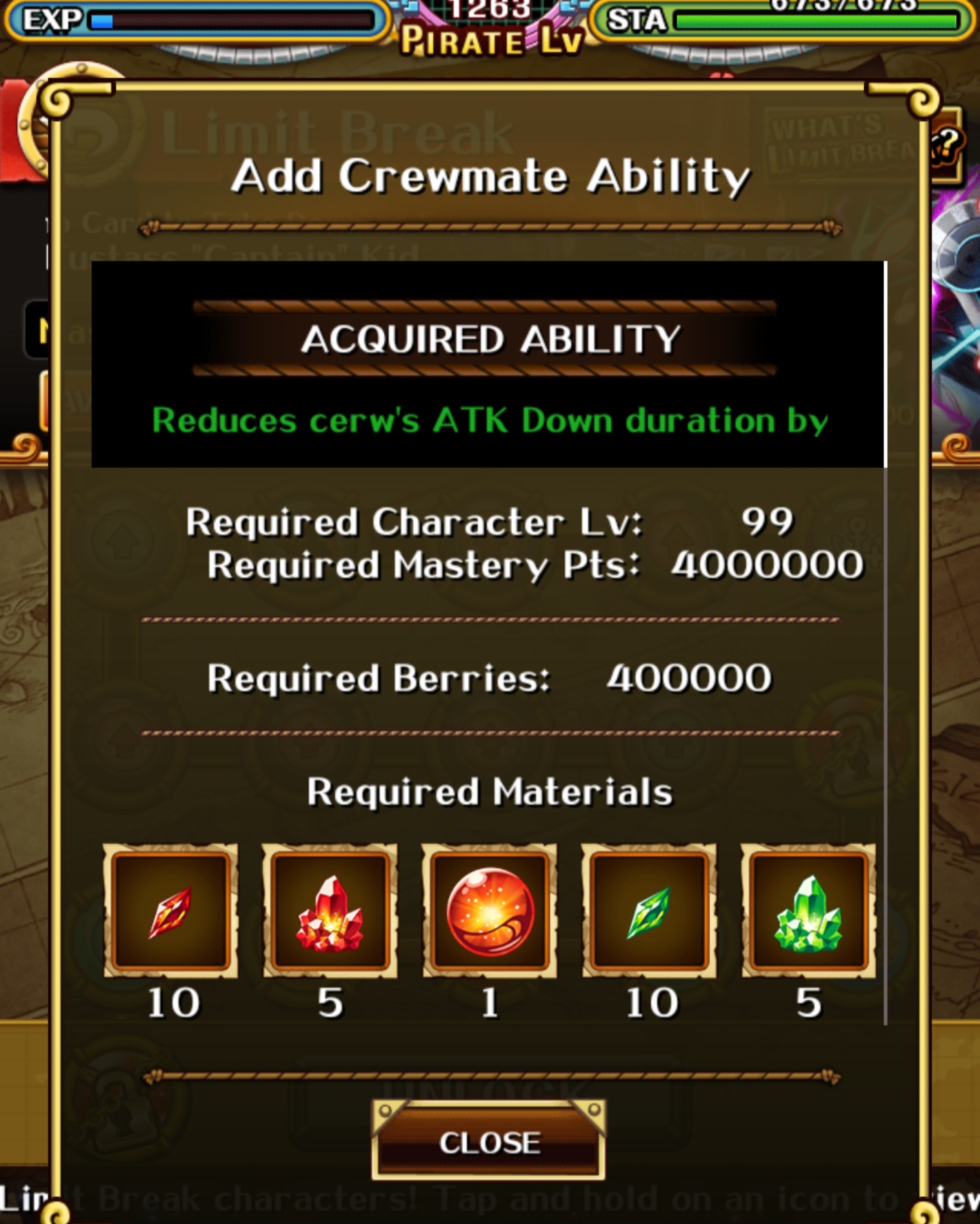 >>1914862Ah no, it was mainly to save space since it was so scarce. This isn't an issue anymore, cc is stocked separately from everything else, and all xp or other powerup material is now stacked.>Also, regarding clones, was it ever worth it to save copies either as pre-evolution or to keep them underpowered for PVP bait?Not anymore, it's been a long time since we had some kind of limited challenge. Dupes are now for a guaranteed skill up, support and lb potential, plus llb. You can get to lv150 on characters after feeding them 9 dupes. It gives massive stat boost for units to get to 150, but it costs a lot of xp. Llb is also divided in levels, and some upgrades are locked behind this system on old units. Stuff like ca, special or pvp upgrades, and some units become useful again or absolute beasts/must have units thanks to that.>And do shitty chars (like some of those Buggy goons or no-name marines) still drop?You mean story/fodder units? Yeah, they still drop and some are now guaranteed after clear too. You can also get them in a fp banner. I still remember I got a title from clearing one level so much to get that fucking int Croc, bad times.