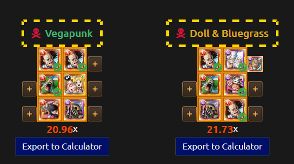 >>1921126So, what now? Vegapunk feels funny if you have Stussy for rumble, which i dont. But, i still dont see how worth it is to change when xmas Uta, Kuma/King, Snake/Buggy, Luffy and Coby are a thing.Vega for cerebral can be worth but.. there are so many options.I already have enough for 5 multis and i need to waste 100 of timed 'gems' soon. Would prolly waste more on part 1 at least until the 20 to get the aurora at the very least... maybe.