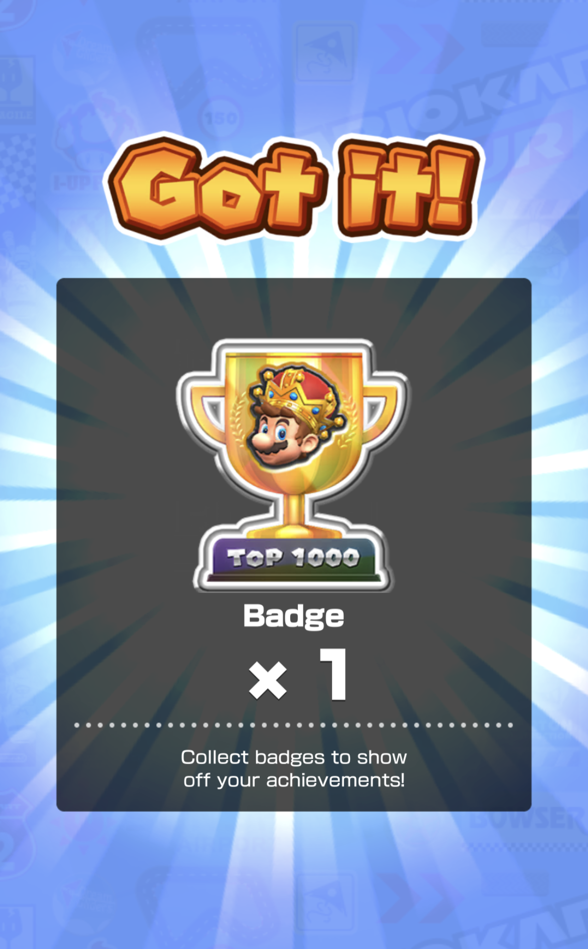 >>1976988 (me)Interesting: ACR badges came 2 days later than usual for the Mario Tour.I was #621, so it wasn't marginal for Top 1000.