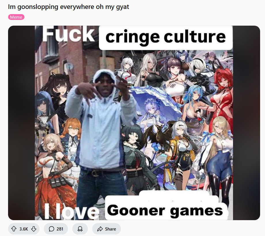 That entire community is rotten to the core, I've literally never seen a gacha game seethe so hard over a female character release before.