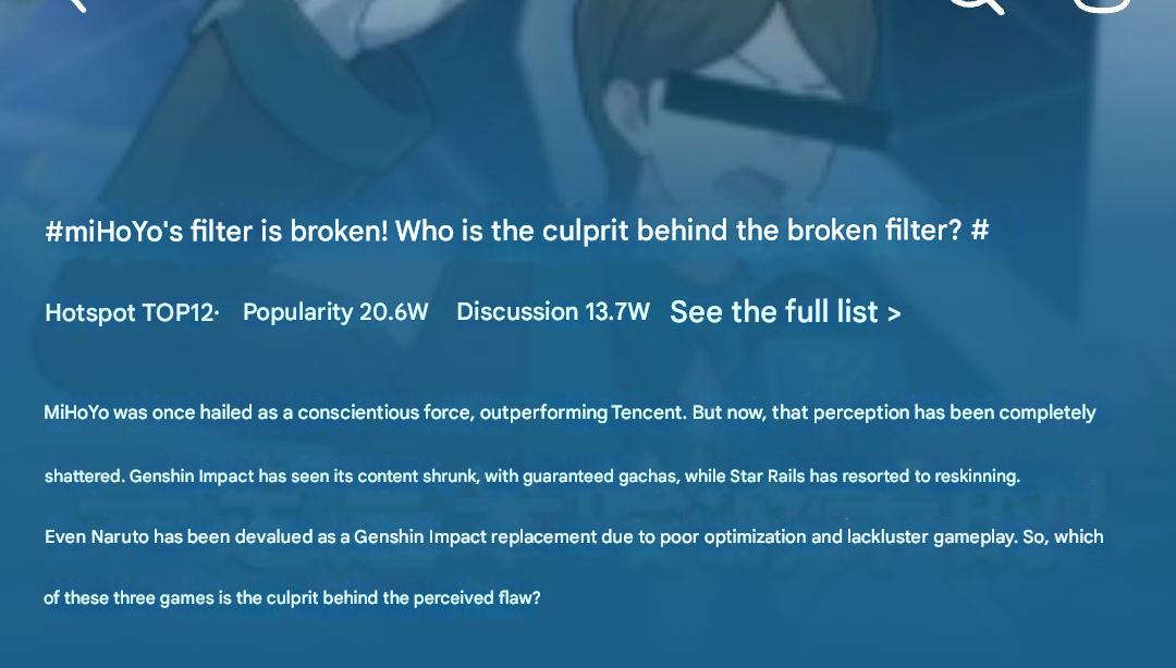 Your source of the juiciest dramas about gacha games. Anything goes---your sentiment about the gacha industry, schizo takes, conspiracy theories, MTL screenshots from obscure Chinese forums, or just random gacha related topics that don't fit in a specific general.
