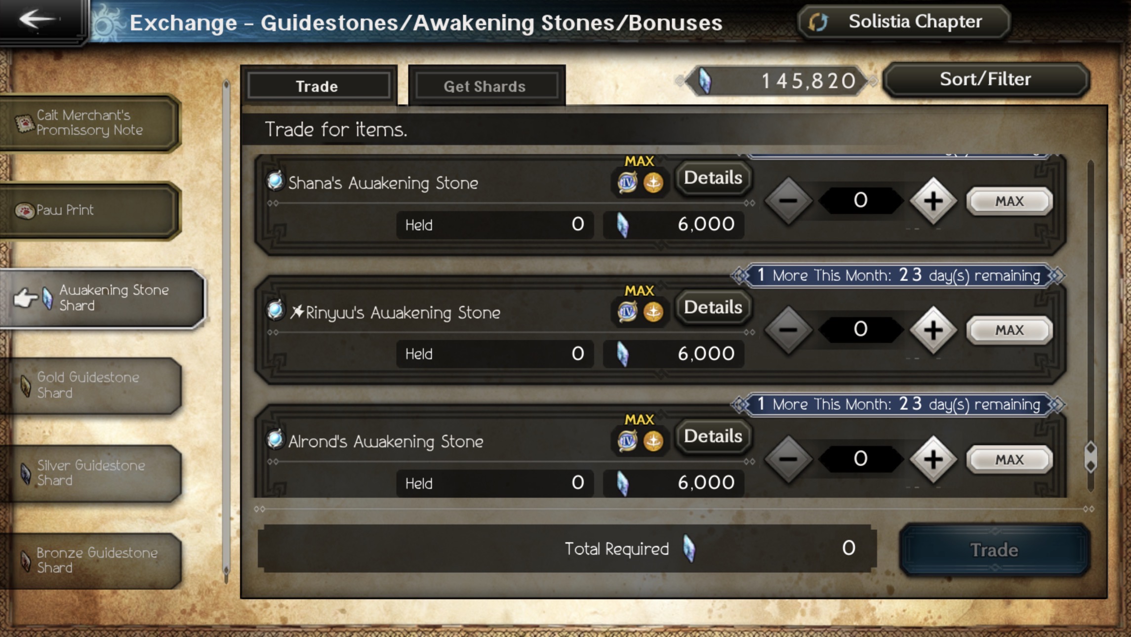 >>1921188For certain banners, you can use the Awakening Exchange. You can trade six Awakening Stones for 1000 shards a pop. Then exchange 6000 shards for a single Awakening Stone.Collabs (among certain others like Champions of Memory and Seasonal Banners) are different. You can buy one awakening stone ONLY during the first run of the collab banner. Otherwise you HAVE to get to pulling if you want multiple awakening stones. For Live a Live, you better hope you have some cash handy.