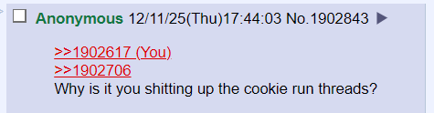Are you going to have a Merry Christmas? Can you feel the earthly desires leaving your body when asked what you want for Christmas? What will (you)r favorite Cookie be getting for Christmas? Which collab are you enjoying more? Which collab are you still waiting for? Do you plan to max out these totally-meta cookies? Will you be here for next year's thread? What did you think of this year's /crg/? Have you thanked your local Birthday Cake Cookie? Have a happy new year as well and discuss all things Cookie Run!Give and receive and love and cherish those that mean the most to you. Even those that mean a little to you! Be happy that you are here. That you can see and breathe and move and play Cookie Run Games! Birthday Cake Cookie is glad you're here and still getting up every day! Thank you for visiting Cookie Run Games!Birthday Cake Cookie would like to remind you that the g in /crg/ stands for GAMES, not general! The rules state that threads that talk about a specific game are considered generals, which belong on /vg/! However, these threads are centered around MULTIPLE games of different genres! For example, Cookie Run: Ovenbreak is a runner! Cookie Run: Kingdom is a townbuilding RPG! Cookie Run: Puzzle World is a match three puzzler! Devsisters is currently working with a multitude of Cookie Run Games of different genres right now as well! These threads have never been to talk about a singular game! These threads are not generals and do not fit general specifics! Please keep this in mind forever, thank you!
