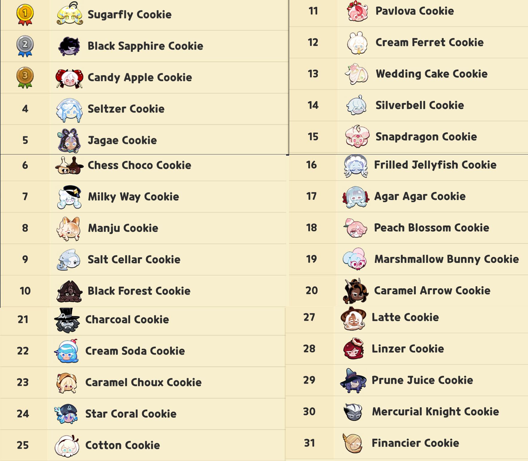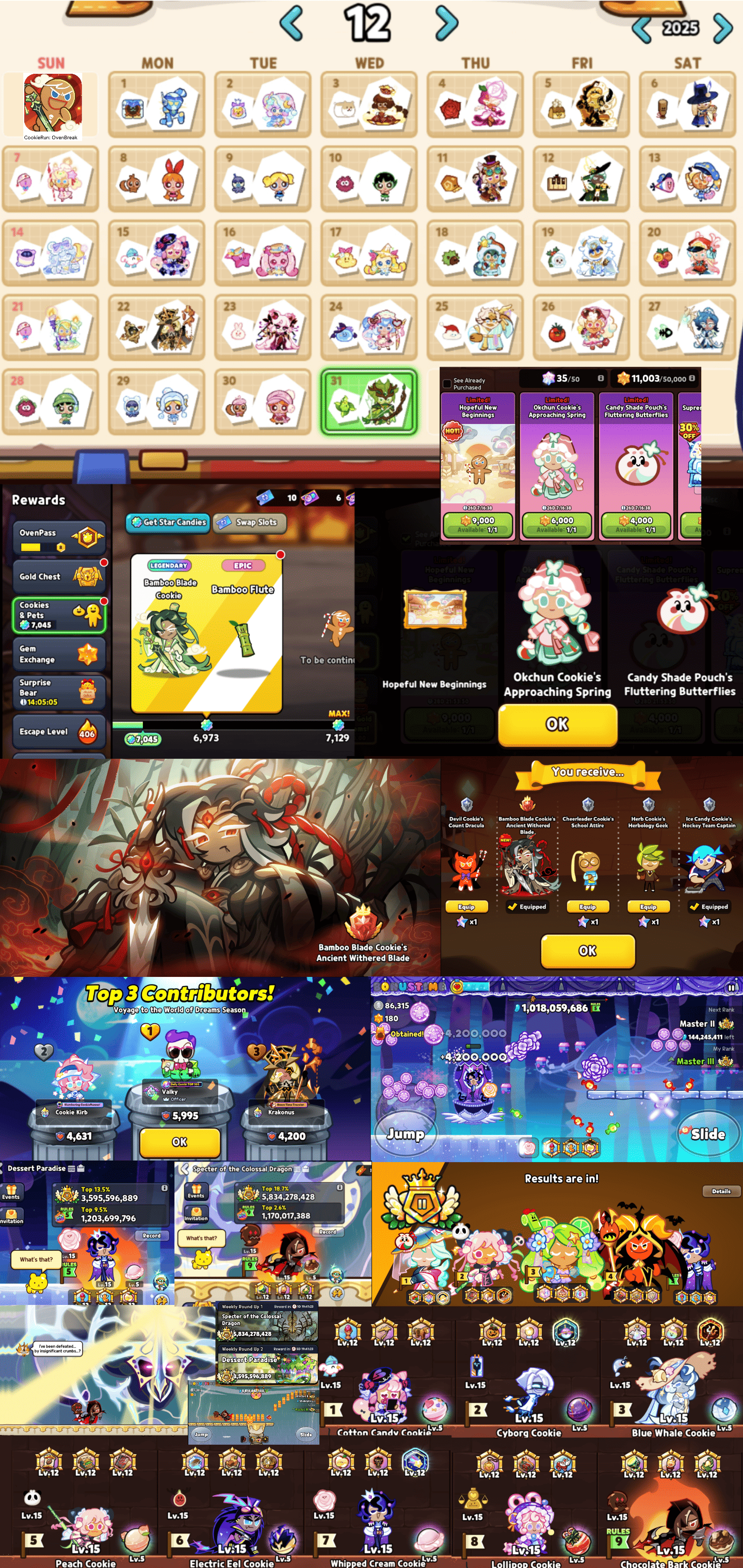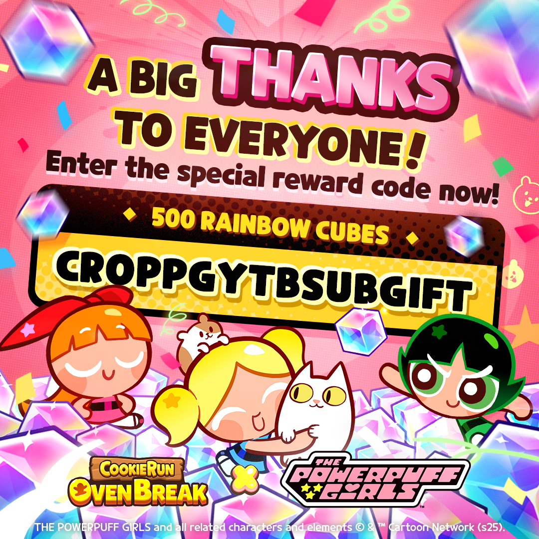 We close another year together, Cookie Run Games players! Last call for the year is as follows:Ovenbreak>Save the Day - It's the Powerpuff Girls!>Meet Blossom, Bubbles and Buttercup Cookie!>Collect Sugar Candy to upgrade the PPG and unlock nice stuff!>Beat the SHIT out of their villains and watch them jailbreak!>New treasure - Sugar X - Copyright Safe!>New Jelly Shapes/Costumes later this month!>Lychee of the Year Voting!Kingdom>Meet Chess Choco Cookie (Epic)! Alongside Glinda™ Cookie Elphaba™ Cookie from Wicked™!>Wicked™ Collaboration with mini story events to obtain The Good Witch™ and The Wicked Witch™! - Do daily chores for a chance at getting these cookies and Time Limited decorations! NOW!>Invitation to the Abyss! - The Beast Cookies have been invited to the Totally-Not-Grandmaster Hotel to be awestruck by Dark Enchantress Cookie coming back!>Essence of Supremacy, Beast Raid Supply Shop, Gem Quest and Weaving Challenge to get Beast Cookies you missed!>Abyss of the Four (They forgot about Silent Salt)! - Boss event to beat the jam out of the beasts at least 40 times each!>Legendary Costumes for White Lily Cookie, Silent Salt Cookie and Epic Costumes for Butter Roll Cookie and Matcha Cookie!Tower of Adventures>Meet Black Barley Cookie - An earth type ranged cookie who certainly has a 50 Cal. explosive round sniper rifle!>Warm Embrace Artifact and Blackened Barley Boomstick Weapon added to equip him with More Gun!>Abyss Raid Added! - Fight in the Abyss Dungeon daily to get sugar crystals that buff your cookies so that you may defeat Melanchream Cookie's TRUE FORM>Seasonite equipment type added to give MORE buffs to your cookies>Roasted Bacon Cookie is there too!Witch's Castle BLAST>Meet Cottage Cheese Cookie - Yet another Pissbaby!>New Gimmick: Cottage Cheese Maker, Sub-Skill Buff and levels 4311 to 4350!>Holiday Events to get decorations and currency!>Removed absent guild members...Puzzle World>Don't worry about it!Merry Christmas!