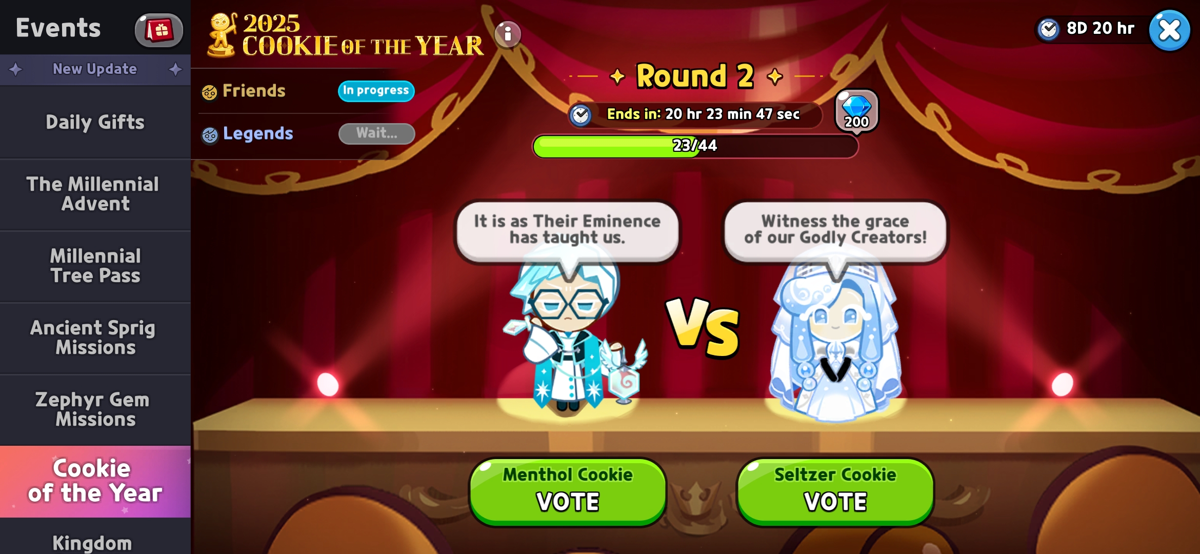 >>1920274Man that's some godly luck, most definitely will just pityget that millenial tree cookie since I heard he's pretty good in arena and would probably swap the likes of either awakened hollyberry cookie, or eternal sugar cookie 3* clear the beast yeasts.
