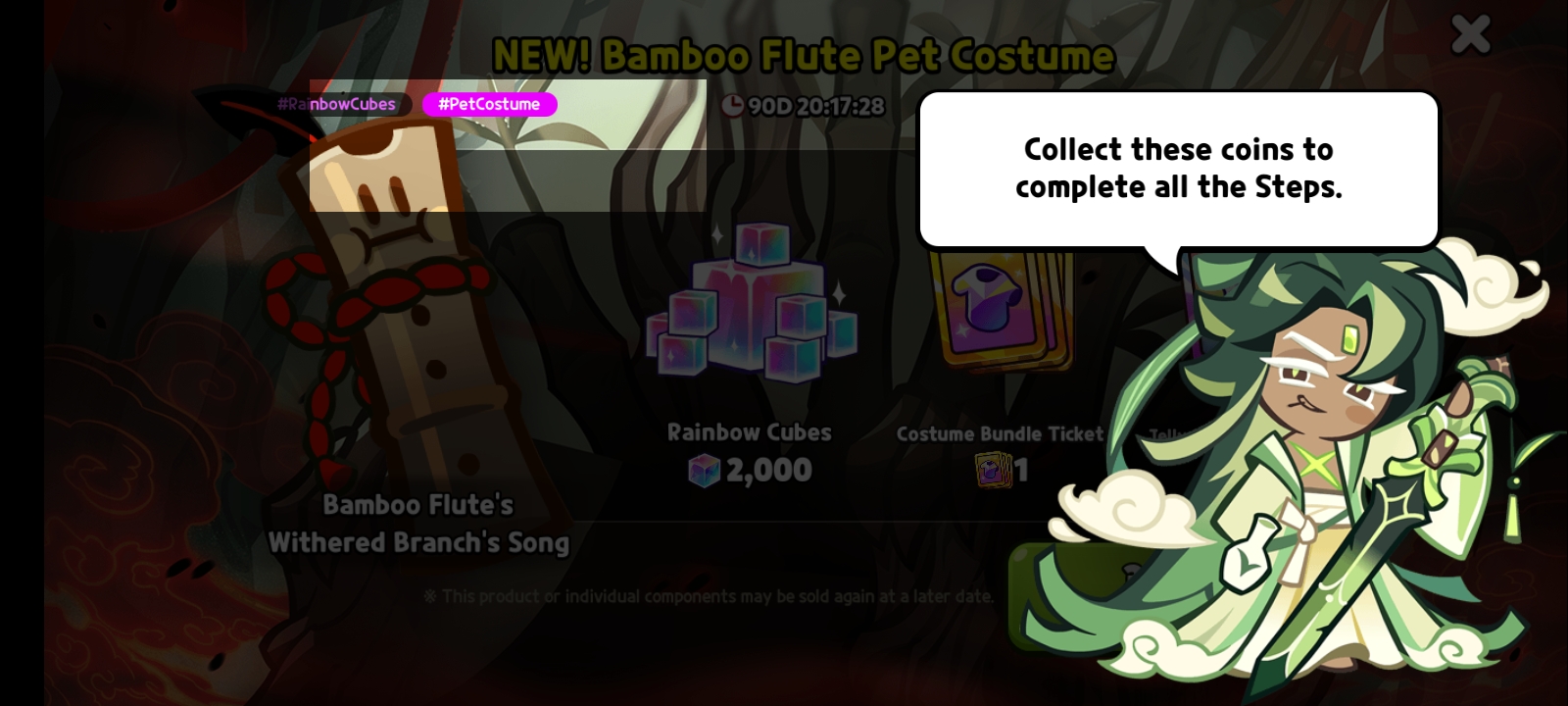 >>1920712Max friendship definitely does play a factor,from what I've seen the buffs are huge.Though if you level up the cookie+pet and do their trial you should get it to max quickly enough.Costumes only really matter if you're a tryhard that goes for T100 in a cookie trial or T500 in an event,the bonuses from technical licenses can be ignored>>1920693Ovenbreak does more standalone stories,there are arcs that have reoccuring cookies like the novas,dragons or the spirit weapons but there isn't an overarching plot tying them all together.Witch's castle does have a main plot but it's very short.