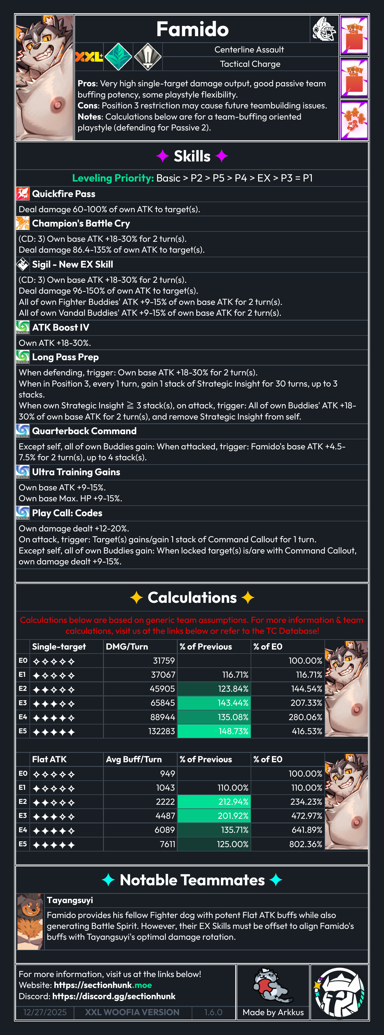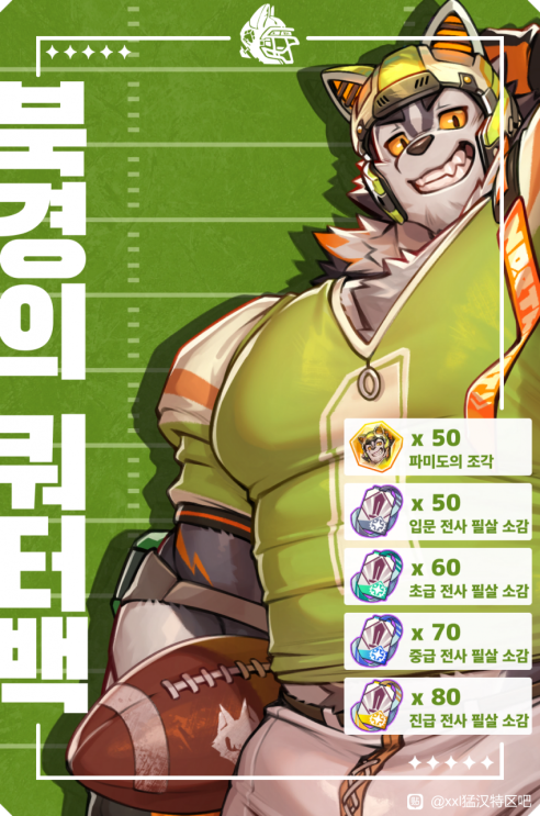 >>1904737ćFamido Skin Backstoryć>The lights on the edge of the field illuminate the ground as bright as day, lighting up even the night sky. The cheers erupting from the stands seem to pierce the clouds! All eyes are instantly focused on the man standing in the centerāthat man is none other than Famido, the star quarterback of the NTU team! And tonight, he will once again lead his team to victory! This skin is unlocked by evolving Famido to 5 stars.>Famido, the captain and spiritual backbone of the National Taipei University American Football Club, is the team's quarterback. He has led the team to win countless tough matches. With his exceptional leadership, unique charisma, and a face that is both cute and handsome, he has captured the hearts of countless fans both inside and outside the stadium. Not only do fans spontaneously form support groups, but a dedicated cheerleading squad holds banners and shouts his name to cheer him on at every game.>On the field, Famido controls the game with his excellent understanding of the sport and agile reflexes. His meticulous judgment and strong physical fitness quickly made him the captain most trusted by his teammates. However, the moment he leaves the field, Famido immediately transforms into someone with zero life skills. When washing clothes, he always pours too much detergent, resulting in his clothes foaming up when he sweats. When cooking, he either breaks the kitchen utensils or nearly burns down the kitchenāexperiences that have happened more than once or twice. He is somewhat aware of this but doesn't find it serious. Therefore, in his daily life, he heavily relies on the help of the roommate he shares an apartment with.