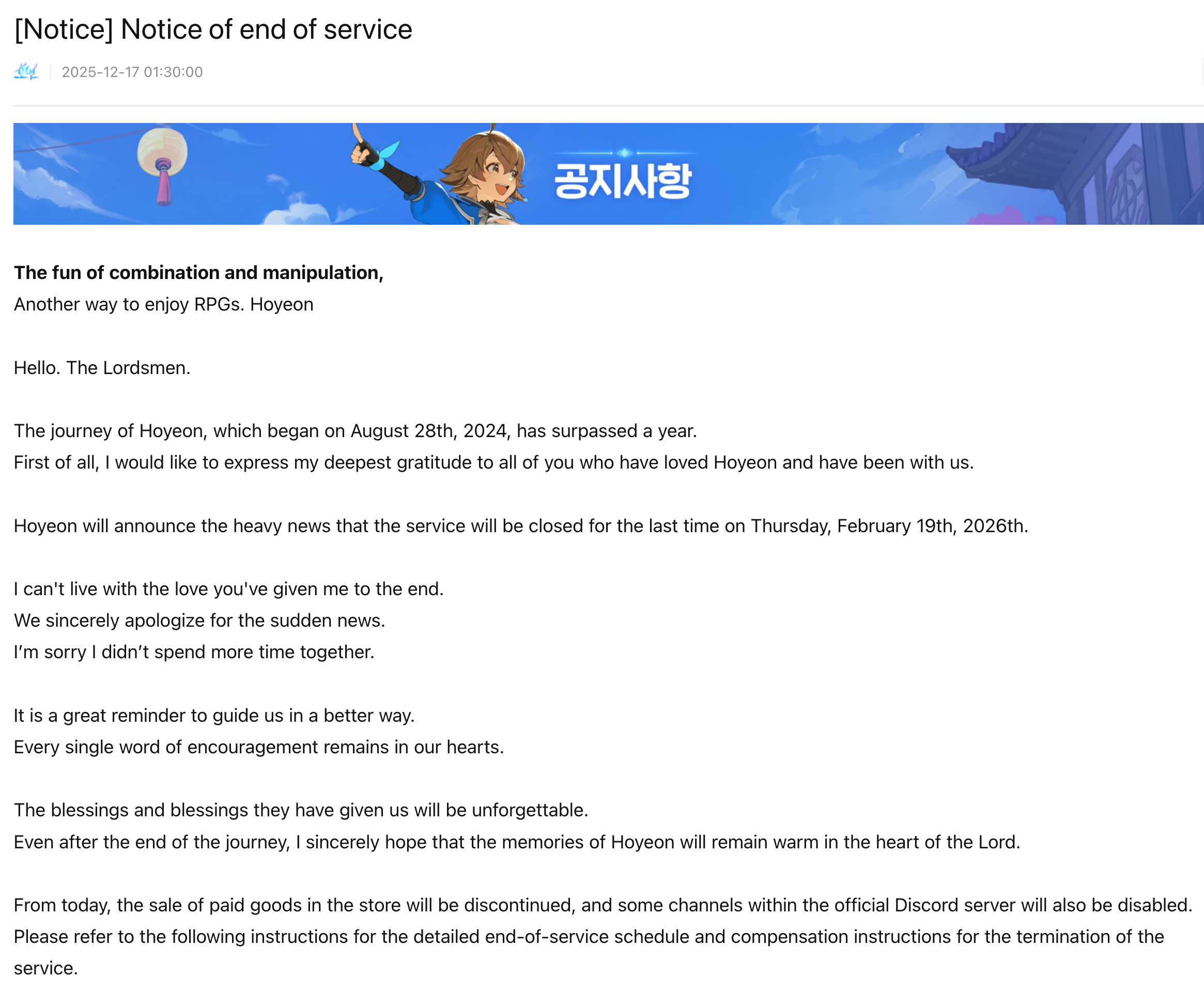 >>1907045It's not going to shut down because the story is finishing next year if that's what you mean.