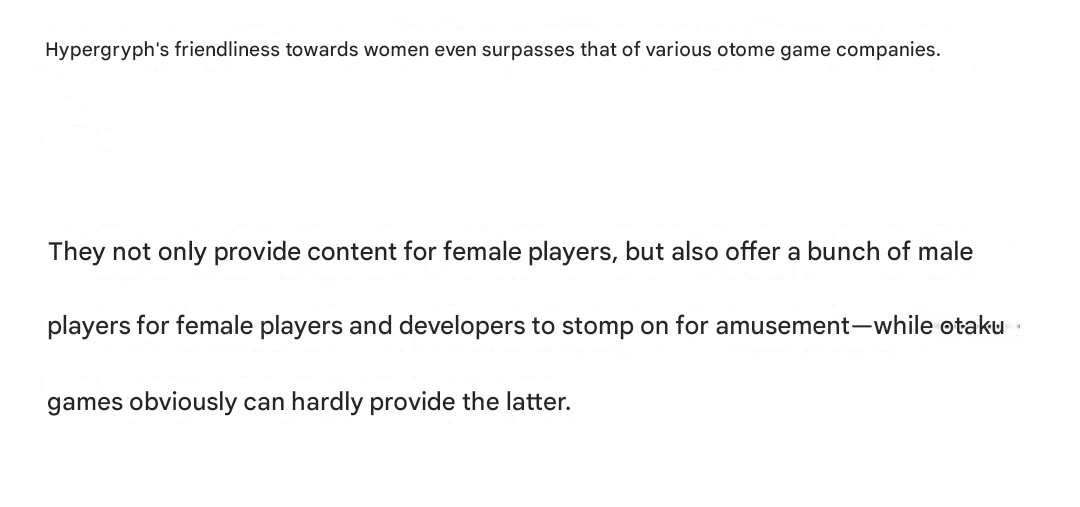 Why HG doesn't listen to female players and cater to straight men instead? In HSR, husbandos such as Ratio and Aven got the breast window while waifus like Fugue are covered up with that ugly shell