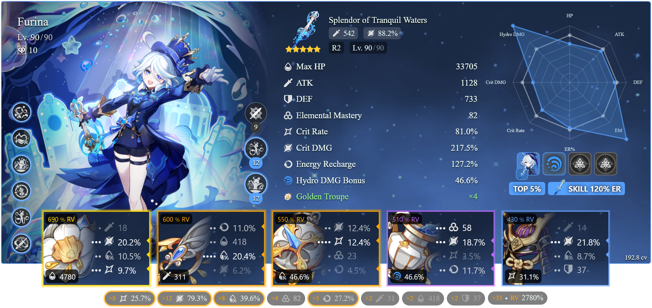 >>1924690Mainstats: HP HP CritSubs: ER Crit HP. EM is negligibleWhich set will depend on the role you want her to play: On-field will use Nefer's set, off-field will use either Serenade or the new Moon set, depending on if you already have someone holding Serenade, or if you're C0 or >=C2 (Serenade = C0, the new Moon set for C2 or above)Weapons will also vary depending on her role. Her signature weapon is her BiS in every situation but you can pick a good F2P weapon for her, like Widsith for on-field, P.Amber or Blackmarrow (Nodkrai craftable) for off-field. Which role do you want to play her as and how many rolls are you investing on her?